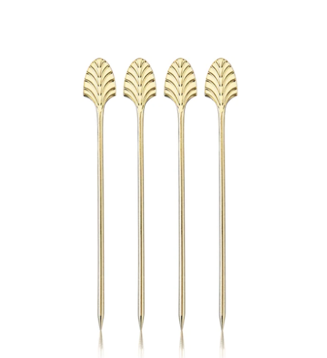 Fixez les garnitures avec style et ajoutez une touche Art déco à votre prochain cocktail. Cet ensemble de médiators plaqués or est conçu pour les personnes socialement enclines.