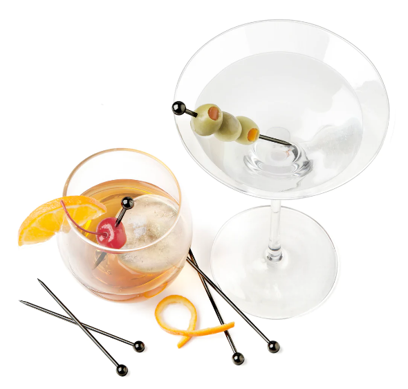 Utilisez ces pics à cocktail simples mais élégants pour embrocher des garnitures comme des olives, des cerises et des melons. Comprend 6 pics durables en acier inoxydable chromé noir réutilisables et lavables au lave-vaisselle. Non seulement ces pics sont parfaits pour habiller les boissons, mais ils peuvent également être utilisés pour les plateaux de fromage, de viande et de fruits.