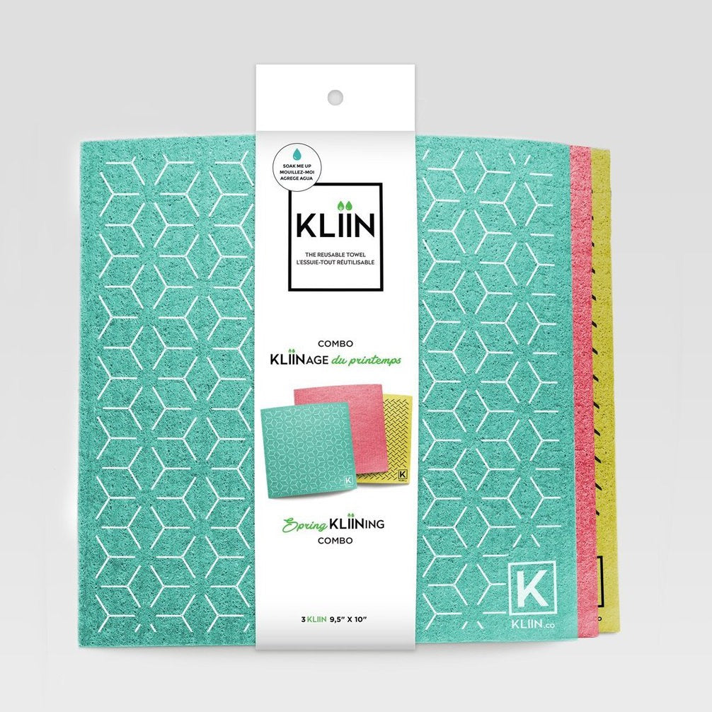 KLIIN est un essuie-tout réutilisable compact, fonctionnel, lavable à la machine, doux, super absorbant et compostable.