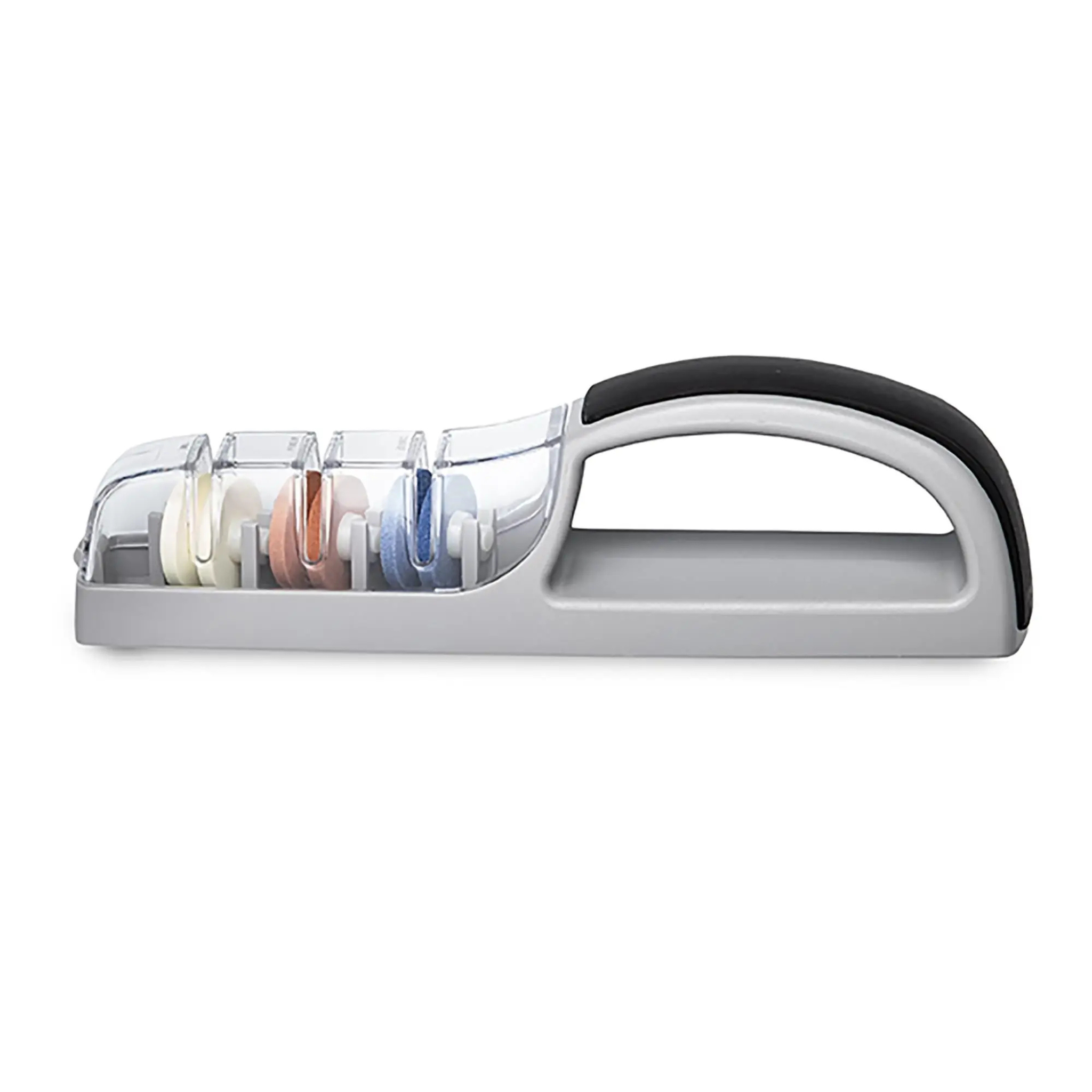 - Design unique : La roue en céramique inclinée restaure facilement la netteté du couteau.