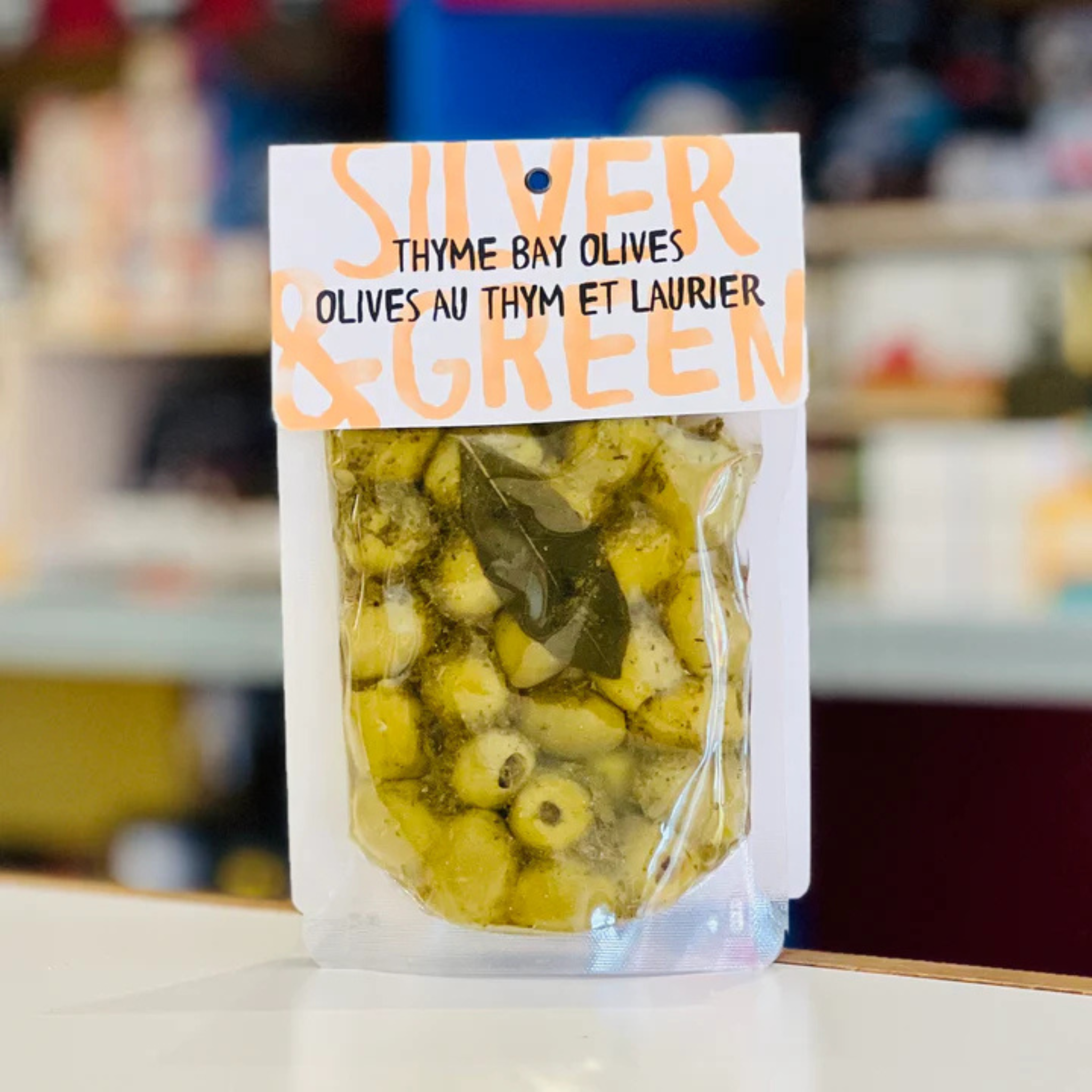 Olives vertes au thym et aux feuilles de laurier 220g - Silver & Green