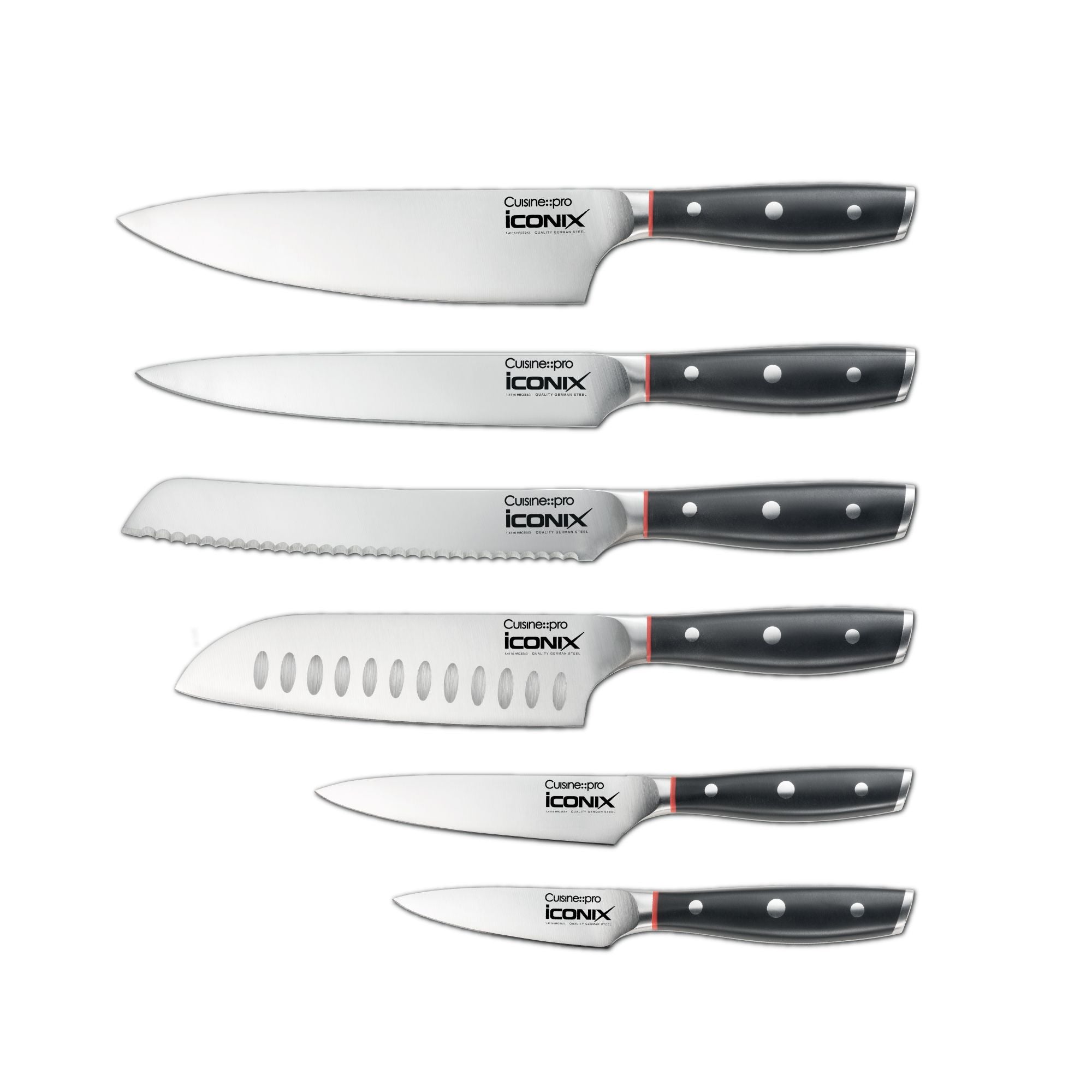 Les lames en acier inoxydable allemand haut de gamme Cuisine::pro® iconiX™ sont forgées au feu et à la glace pour offrir les meilleures performances de coupe, avec un poids et un équilibre parfaits. Chaque lame est produite avec un processus de trempe contrôlé pour assurer la meilleure dureté, ténacité et flexibilité de la lame.