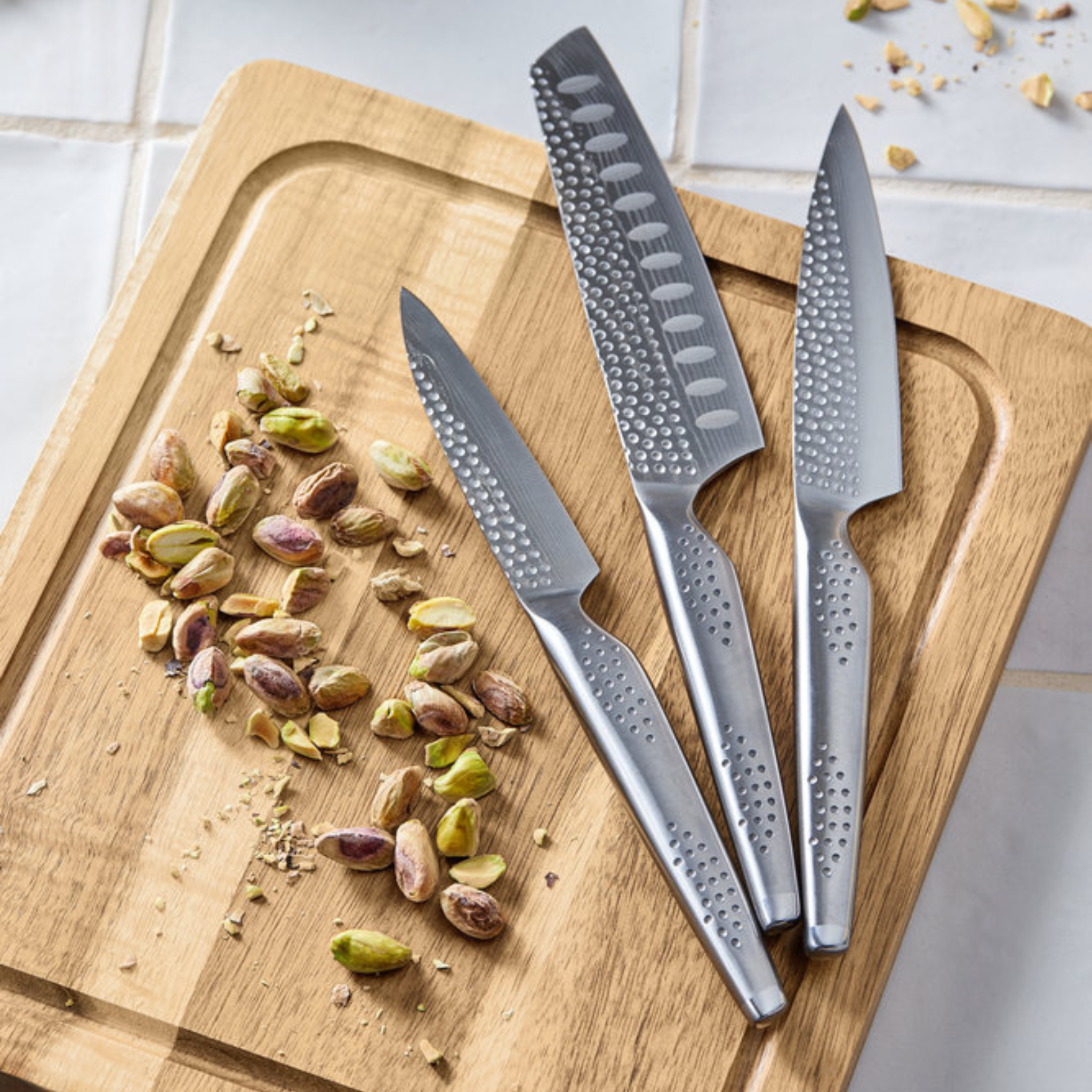 Forgés en acier inoxydable japonais 420J2 et durcis à froid pour une solidité accrue, les couteaux arborent un élégant motif d’inspiration damas ainsi que la technologie exclusive MicroDot®, qui facilite le détachement des aliments. Chaque couteau est testé et conçu pour offrir une force de lame exceptionnelle et une précision optimale, tandis que notre technologie MicroDot® assure une prise en main confortable et sécurisée.