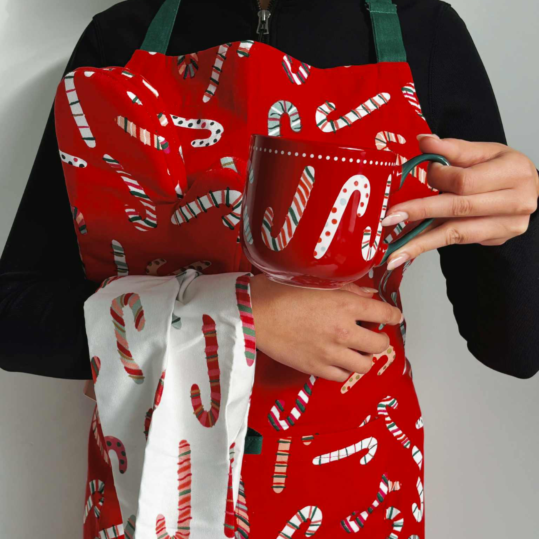 Ensemble tasse 443 ml et linge de cuisine Canne de Noël - Danica