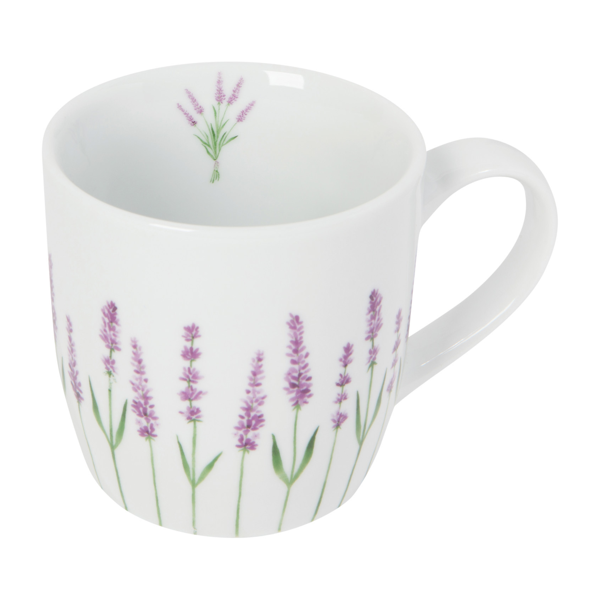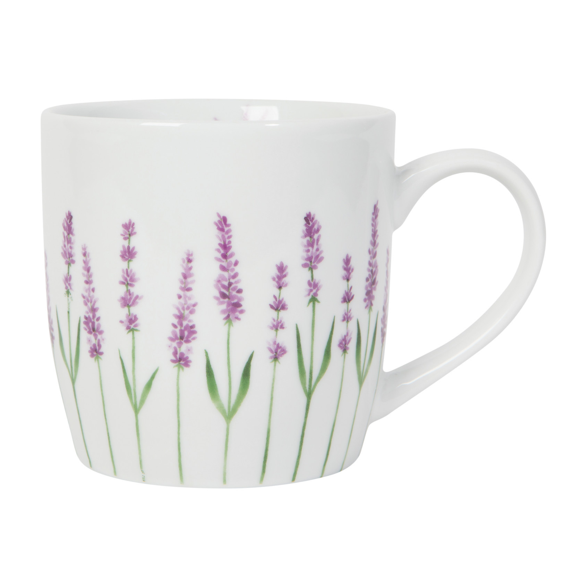 Tasse en porcelaine Blanche avec motif de fleurs de lavande 12 oz - Danica