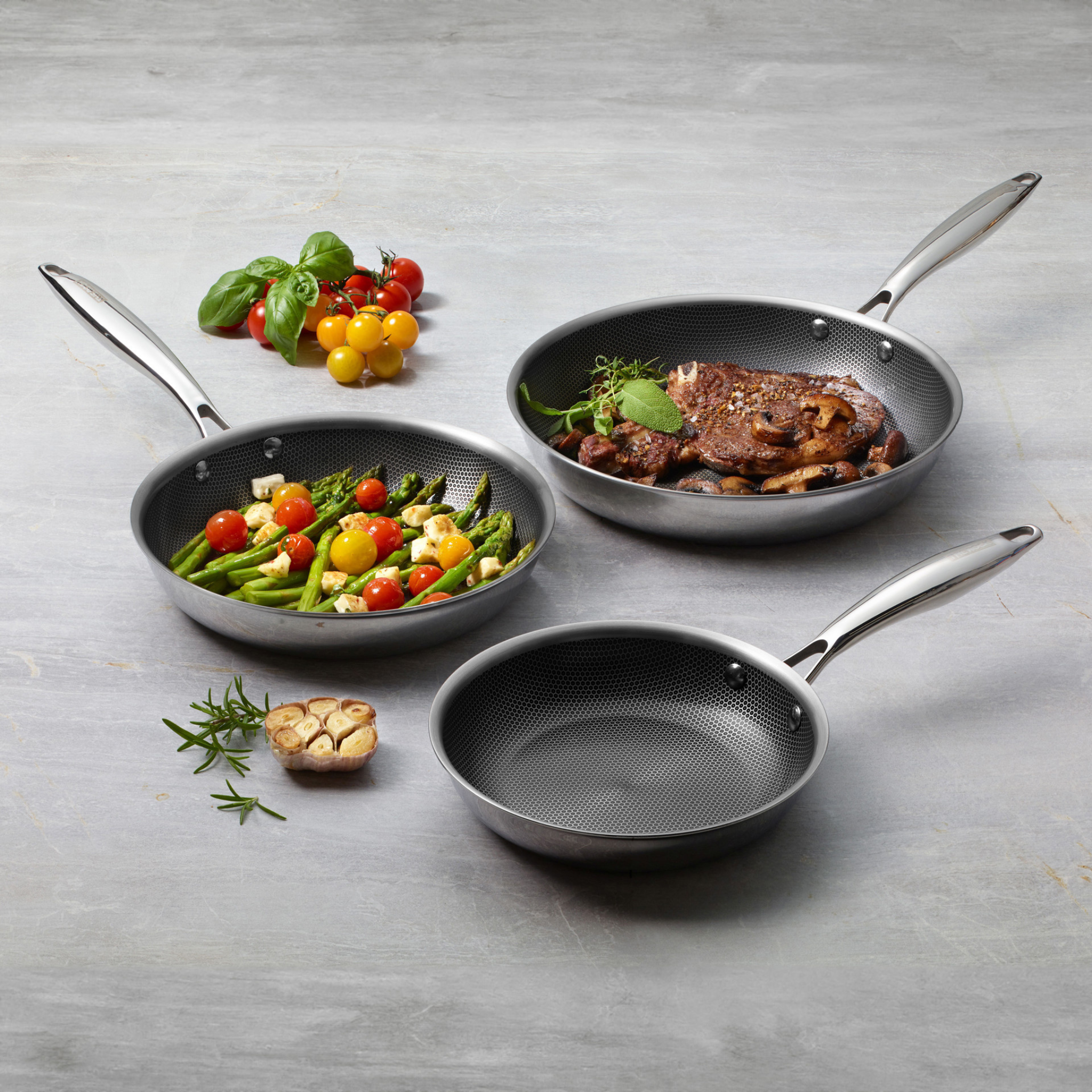 Conçu pour offrir durabilité, performance et polyvalence au quotidien. La surface hybride combine acier inoxydable et céramique antiadhésive pour une cuisson uniforme, un meilleur brunissage et une saisie optimale. Les poignées rivetées assurent une prise en main confortable et sécurisée. Compatible avec toutes les surfaces de cuisson, incluant l’induction, et va au four jusqu’à 230 °C. Facile à nettoyer, même au lave-vaisselle.