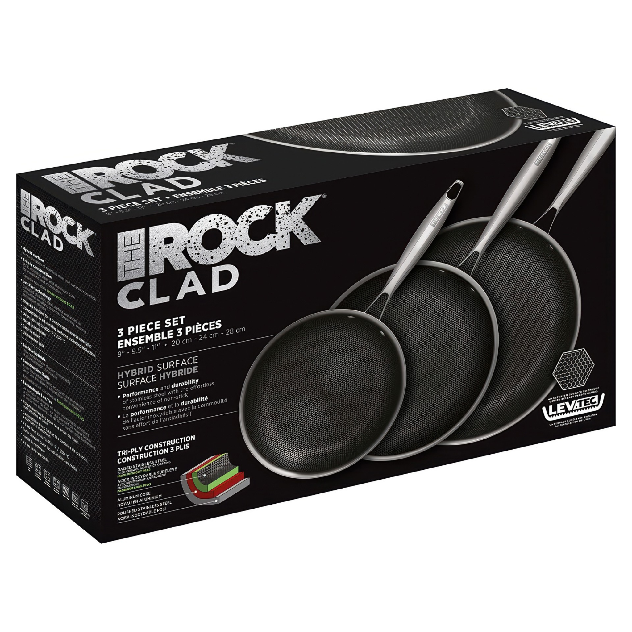 Ensemble de 3 poêles The Rock CLAD 20, 24 et 28 cm - Starfrit