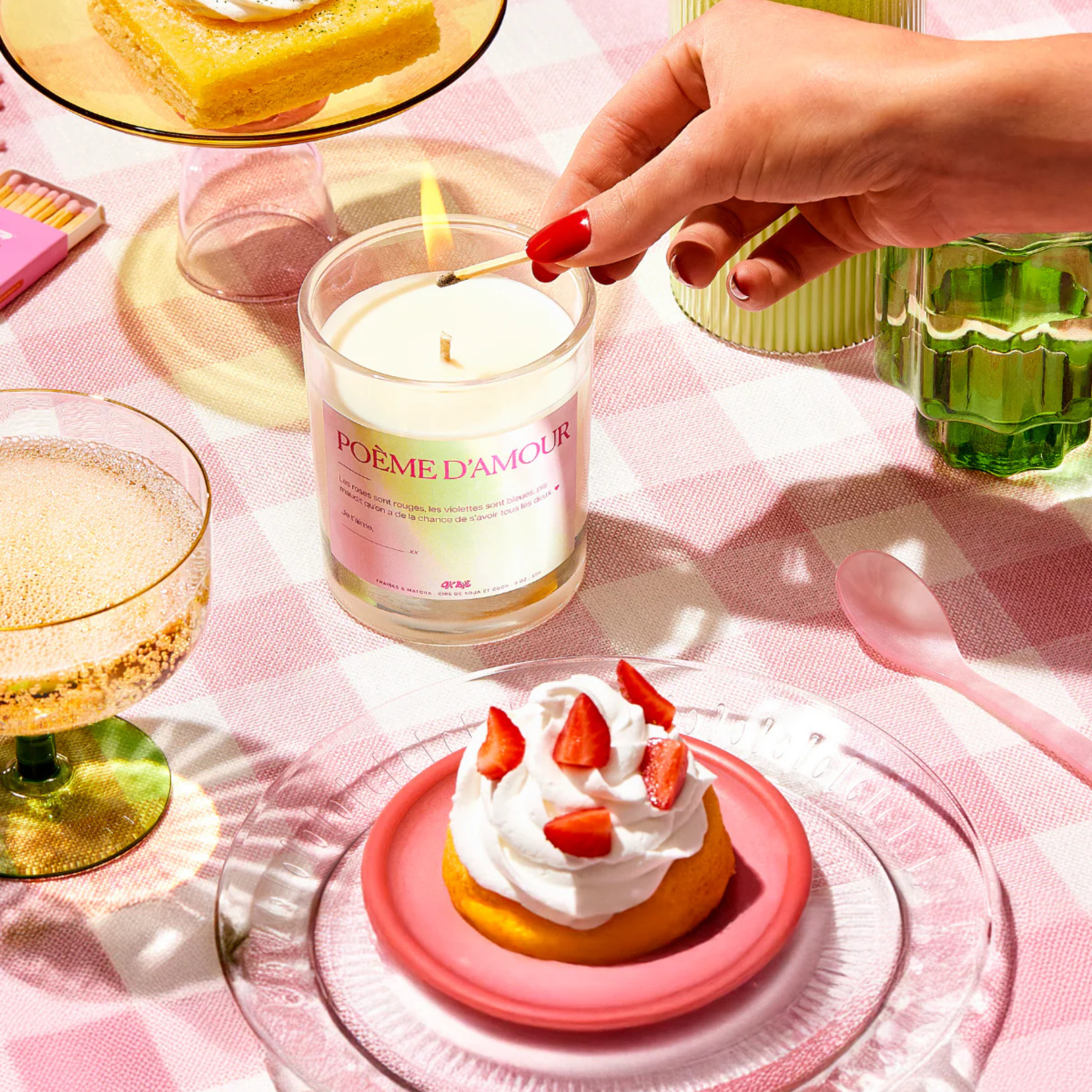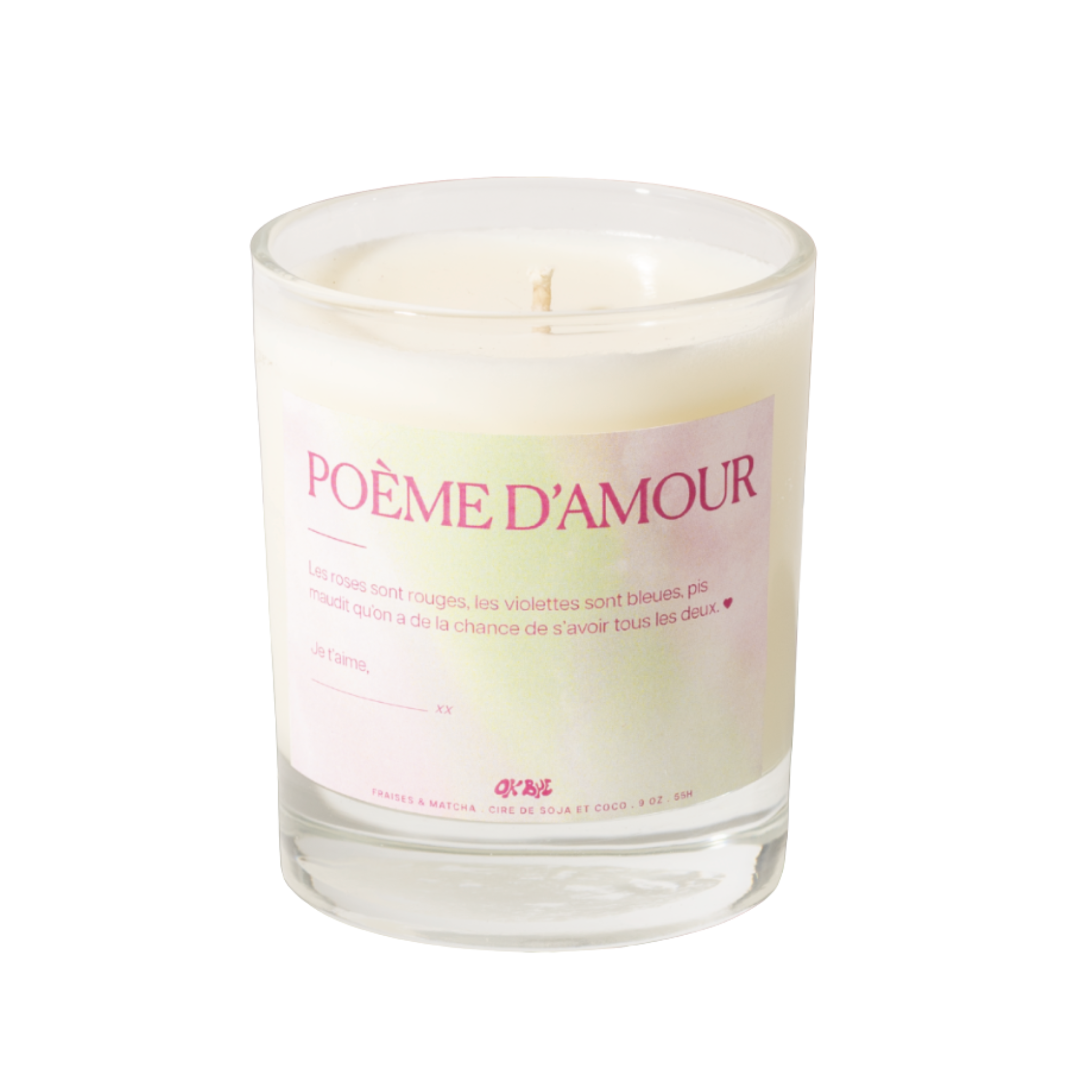 Un poème en pot, doux et sucré. Cette bougie marie la tendresse des fraises mûres à la fraîcheur apaisante du matcha, avec une touche crémeuse et vanillée en finale. Une harmonie olfactive qui dit "je t’aime" sans même ouvrir la bouche. À offrir (ou à s’offrir) à n’importe qui qui fait battre ton cœur — de ton crush à ton chat.