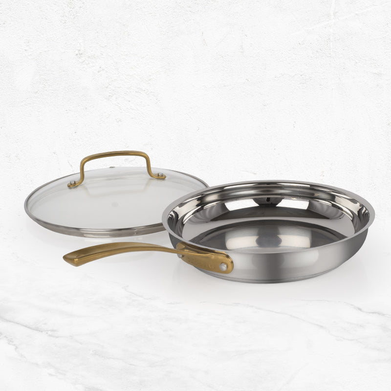 Home chefs will love the fast heat distribution and tight-fitting lids to lock in flavor and texture. Cook on any stovetop, including induction, oven safe up to 500°F (260°C) and glass lids 350°F (176°C). Add exceptional style to your kitchen with this premium mirror-finished stainless steel cookware set!