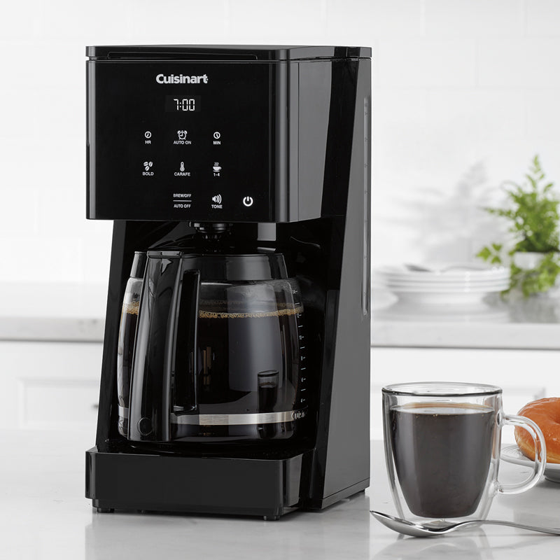 Cuisinart launches its new T-Series line with a coffee maker that will change the dynamics of today's kitchen. Intuitive touchscreen controls allow coffee lovers to tap icons to choose start time, stop time, number of cups, and strength settings. When the coffee maker is not in use, the LCD screen goes to sleep, creating an ultra-sleek look in your kitchen. Simply touch the power icon to wake the screen when you're ready to brew! With PerfecTemp Technology, this premium coffee maker brews even hotter and features dual filters that protect the rich flavor of coffee. Its superb coffee and brand-new look are sure to please kitchens!