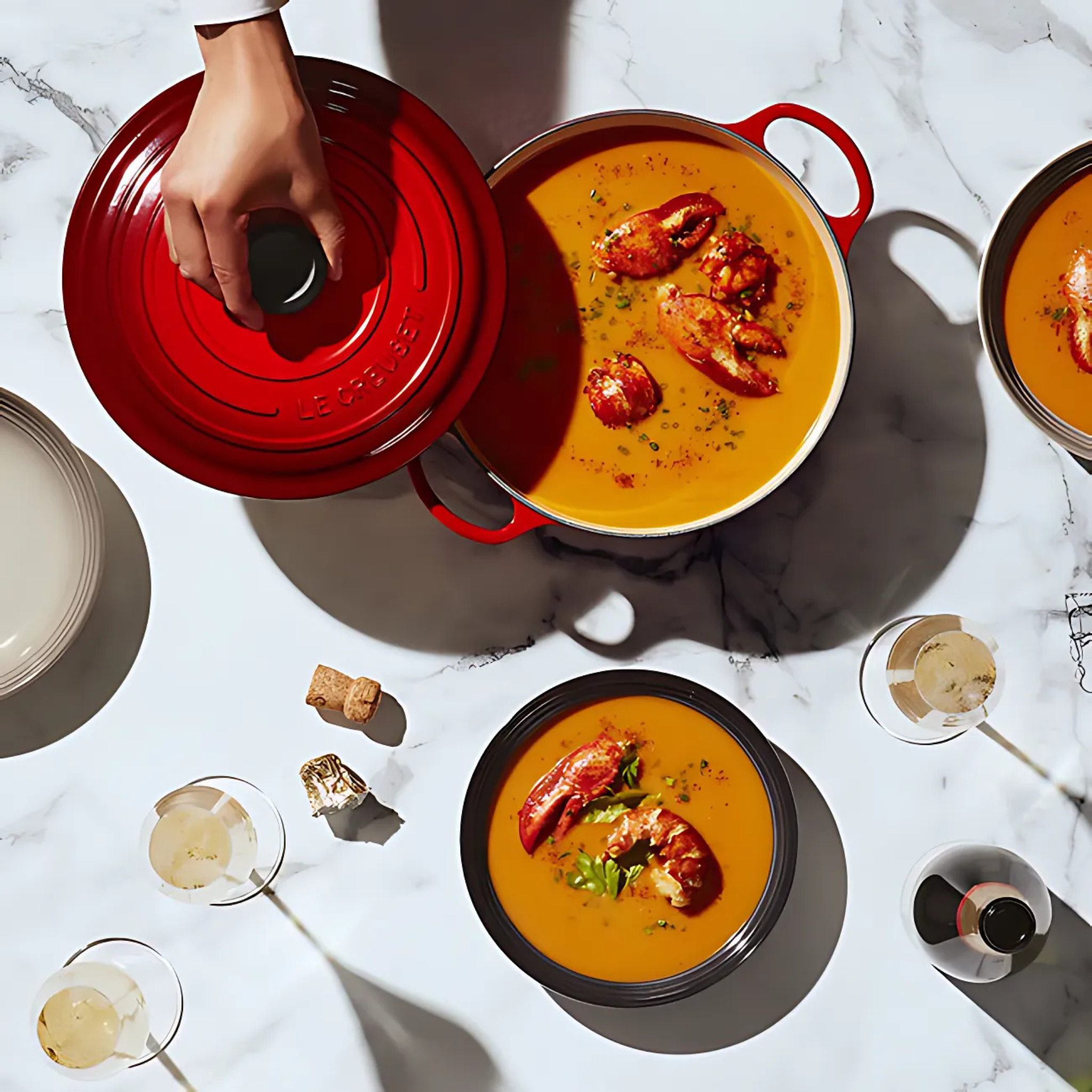 Perhaps the most distinctively shaped item in this category, the Chef's Dutch Oven prevents ingredients from sticking to edges and promotes the continuous movement of liquids. With its remarkable heat retention, this iconic cookware provides an ideal environment for preparing stews, soups, and sauces.