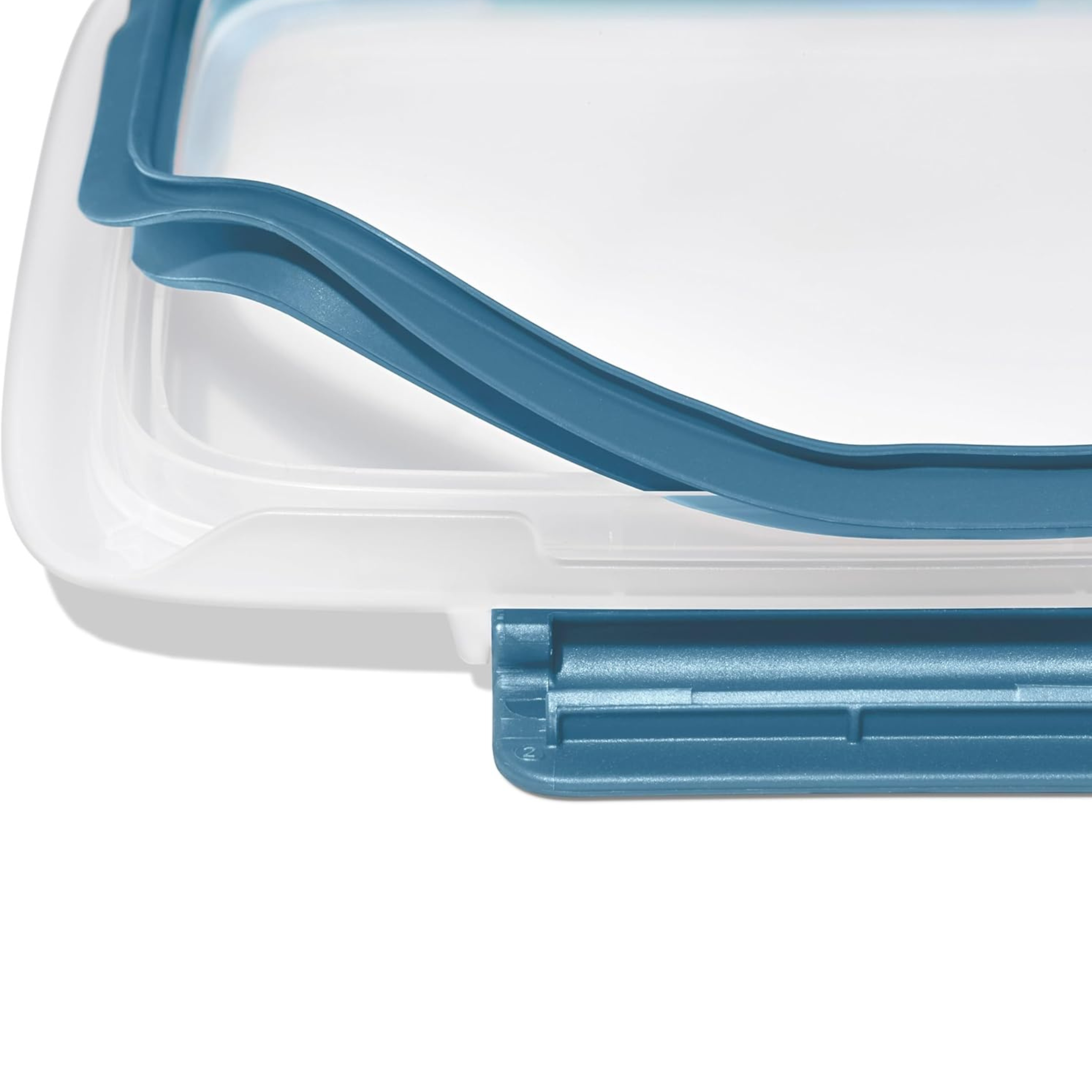 The OXO Prep & Go Snack Container with Dip Compartment is ideal for carrying your snacks while keeping foods separate. It includes a small internal container with a lid, perfect for separating sauces, dressings, or dips from foods like vegetables, crackers, or fruits.