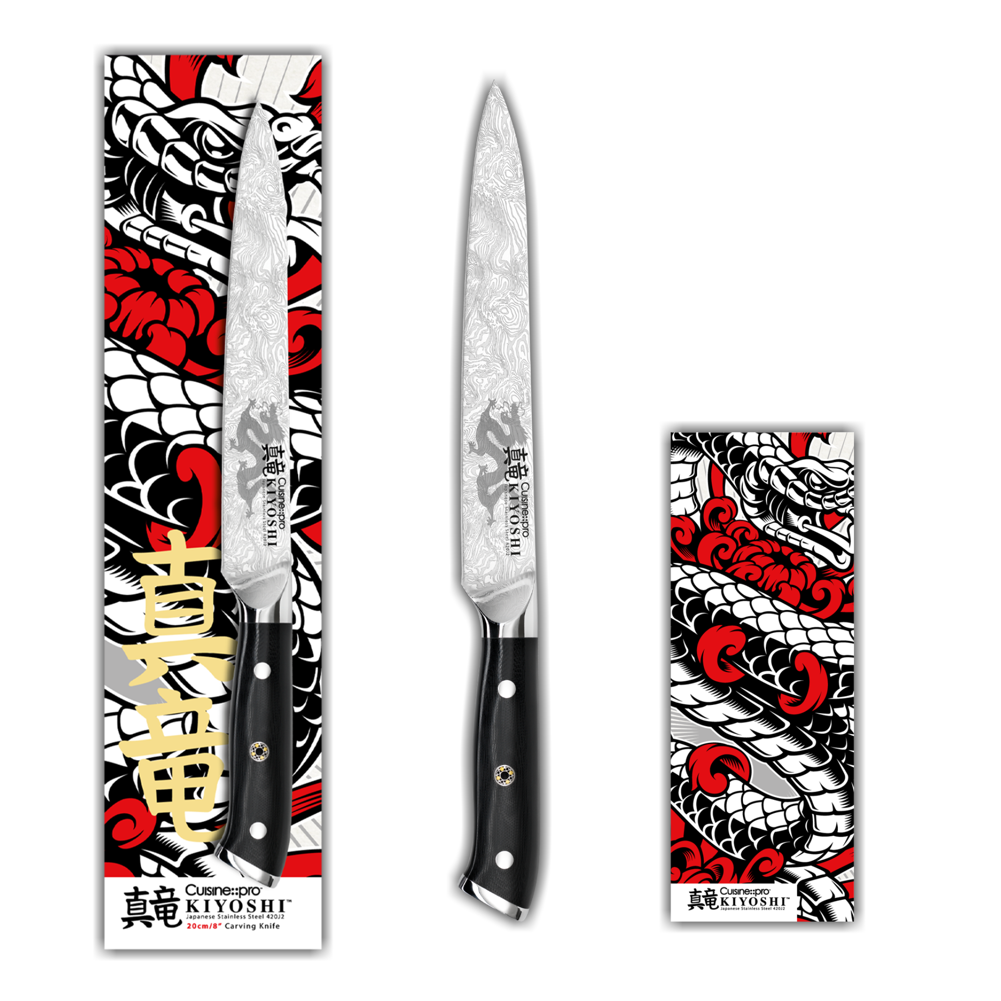 The Cuisine::pro® 20 cm (8”) KIYOSHI® carving knife features a narrow blade and curved profile. A must-have in any kitchen, it is primarily used for slicing and carving. Its tapered silhouette allows the chef to follow contours and guide meat away from the bone.