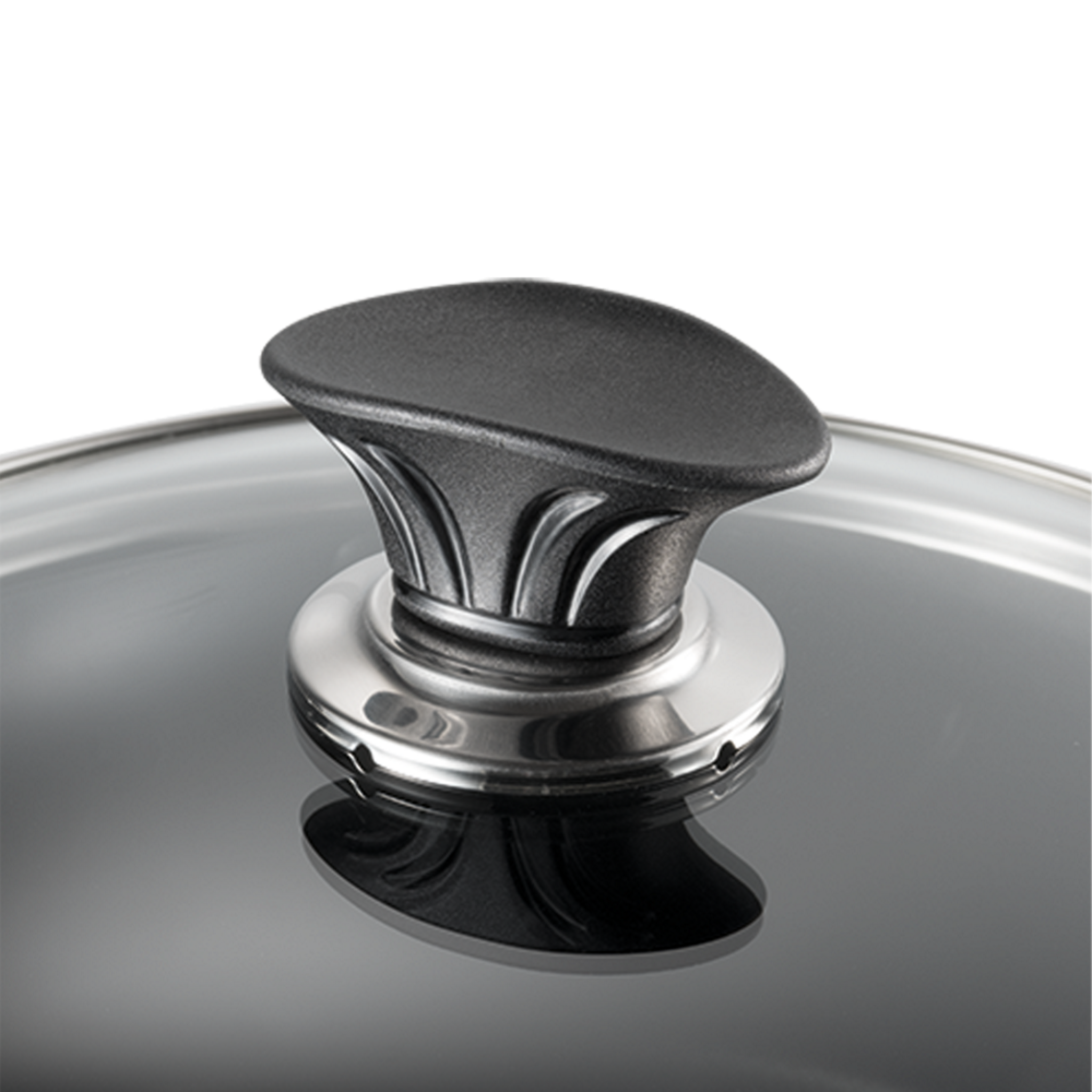 - Equipped with a patented stay-cool handle, the universal lid remains secure and comfortable to grip and handle during and after cooking.
