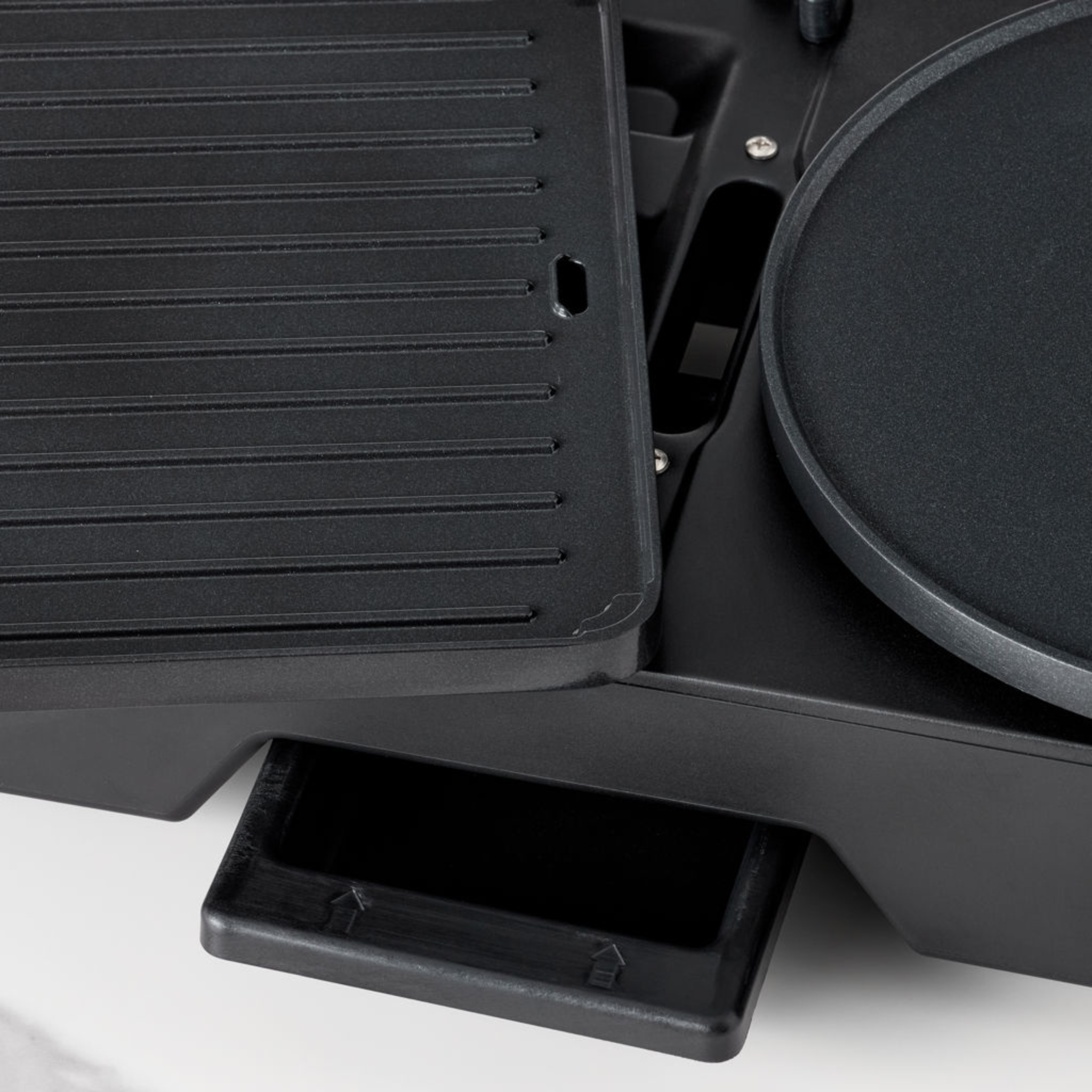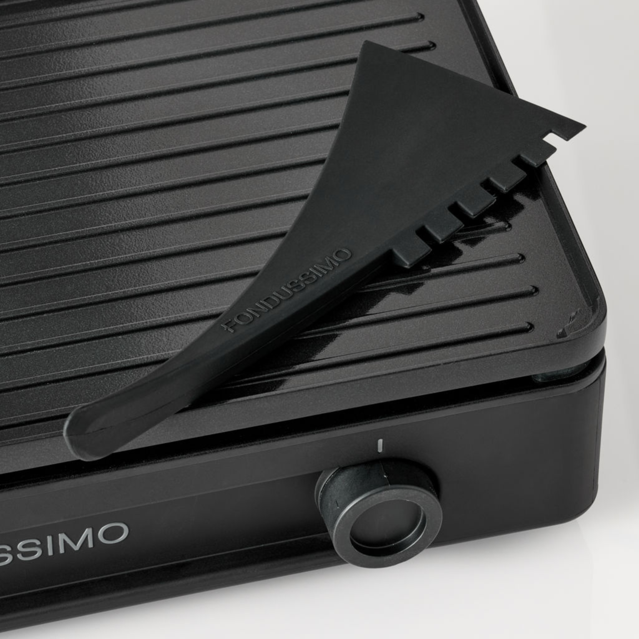 The Dip & Grill combines the pleasures of fondue and grilling in a single, elegant, and user-friendly appliance. Its reversible plate (smooth or ridged surface) allows you to grill meats, vegetables, bread, waffles, or pancakes, then dip them in broth, melted cheese, or chocolate for a personalized gourmet touch.