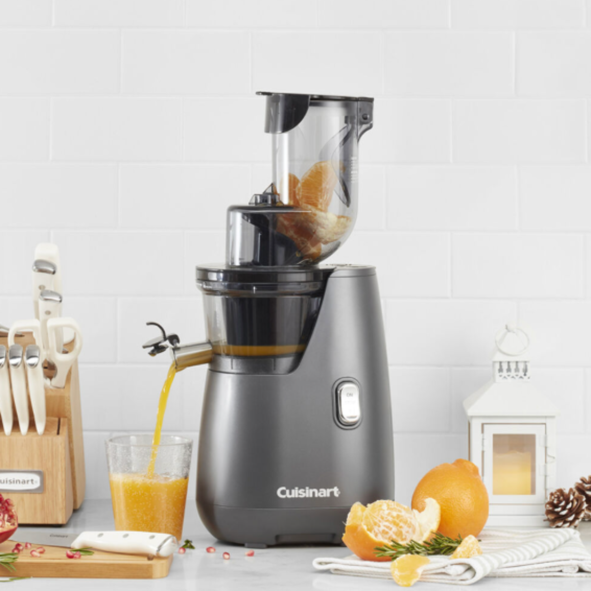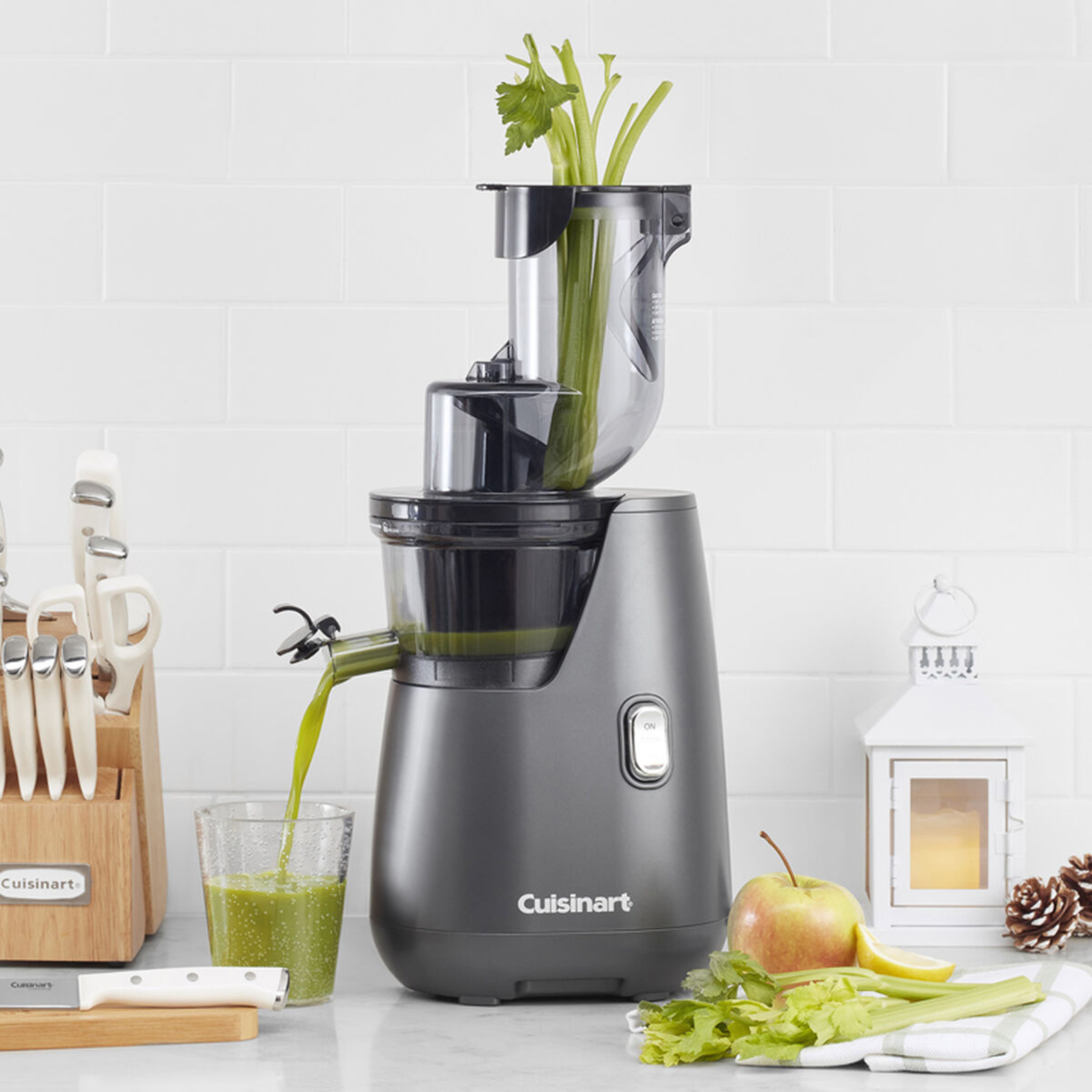 Easily prepare fresh, nutritious juices at home with the Cuisinart EasyClean Slow Juicer. Its auger efficiently grinds fruits, vegetables, nuts, and herbs while preserving nutrients and flavor with low heat. Ideal for creating pressed juices, plant-based drinks, tonics, and cocktails. Its screen-free filter rinses easily, and its parts are dishwasher-safe.