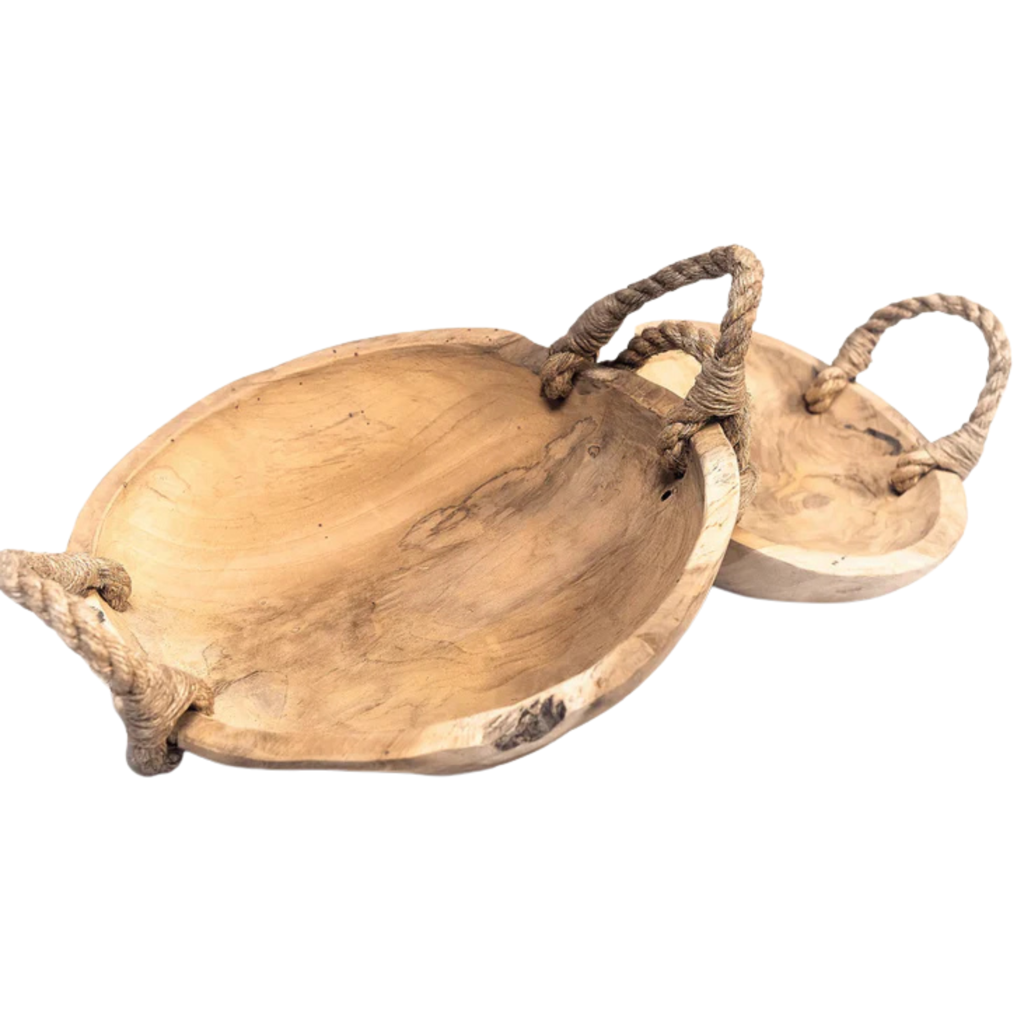 Large rustic teak bowl with jute handles - Crusoe