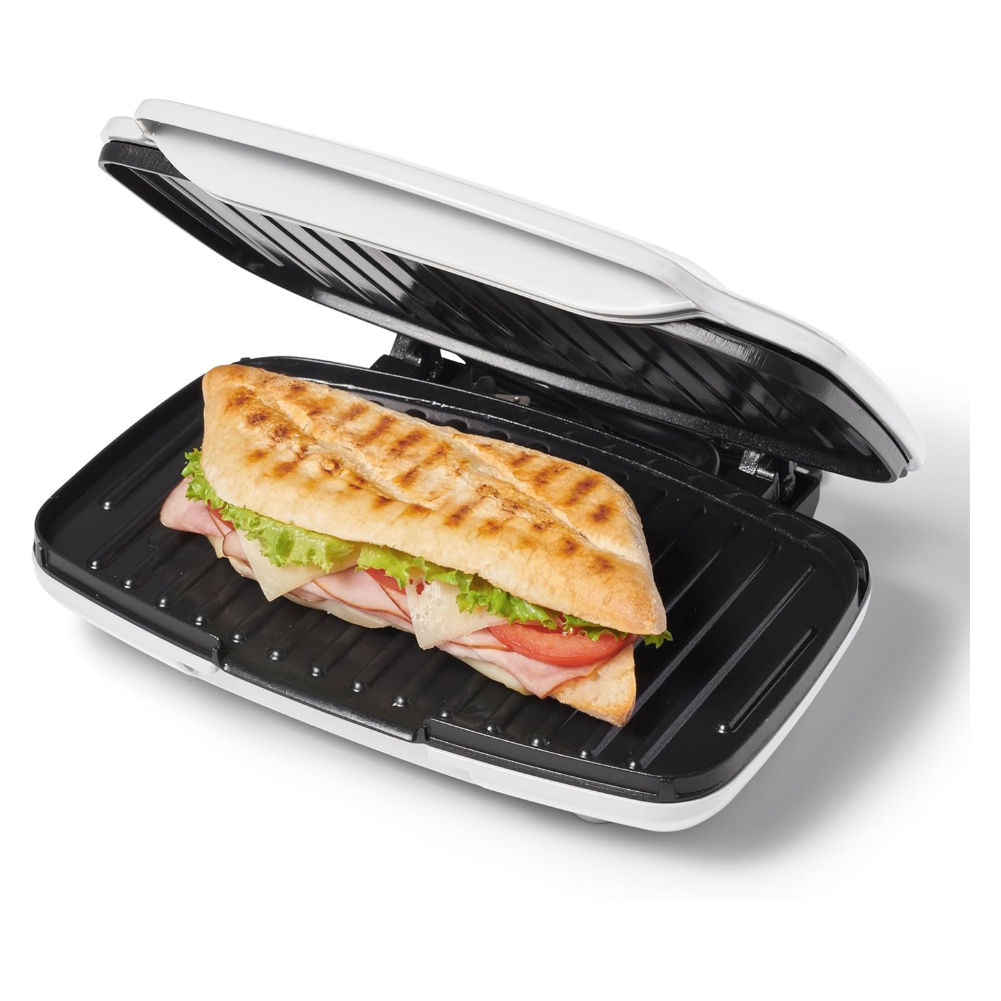 Featuring a removable grease and oil collection compartment, it makes cleaning easy after each use. Its non-slip silicone feet ensure perfect stability on the countertop. With 1000W of power and six temperature settings, it's ideal for grilling meats, vegetables, sandwiches, and much more.