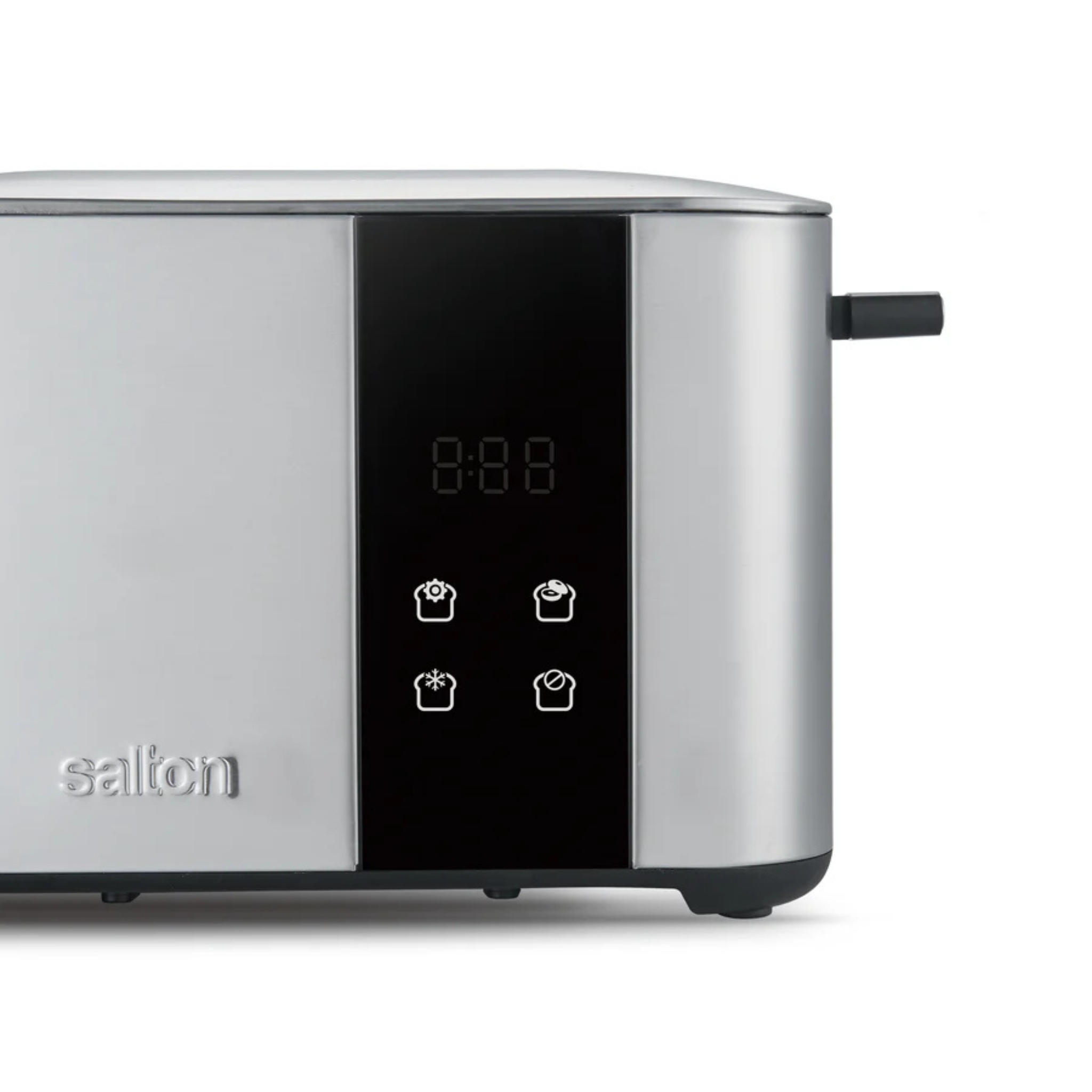 The Salton 4-Slice Digital Long Slot Toaster's sleek styling will enhance any countertop while saving space. One size fits all! Its long slot design allows you to toast any size of waffles, bagels, or artisan breads.
