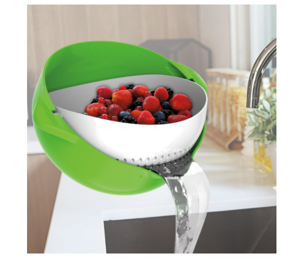 This 2-in-1 colander set makes it easy to wash, soak, and drain fruits, vegetables, and salads with one quick twist. The colander nests inside the basket for superior drainage.