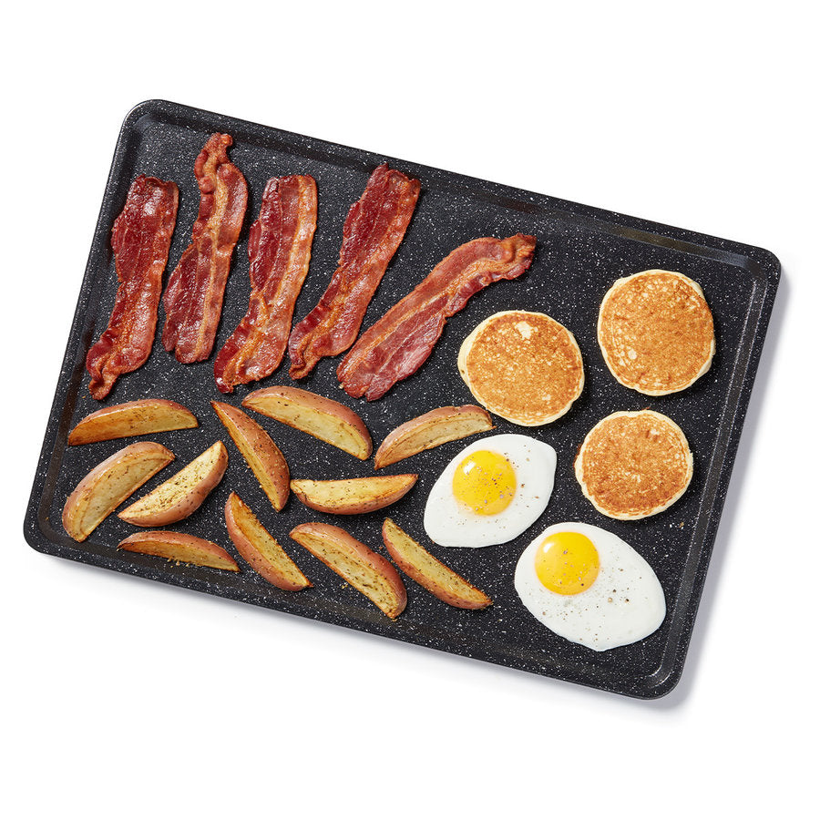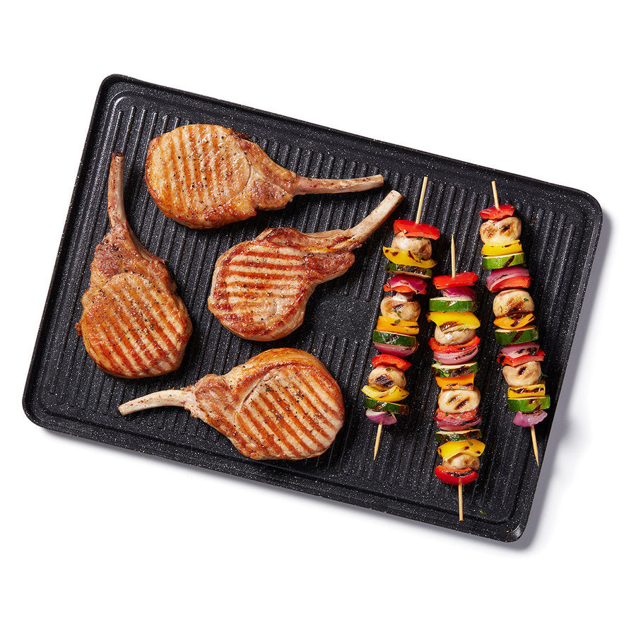 Prepare your favorite meals for the whole family with The Rock Ricardo reversible griddle. Its flat surface is ideal for eggs, pancakes, or pizzas, while the grill side allows you to sear meat, fish, and burgers, allowing fat to drain away thanks to its deep grooves. Sturdy and easy to clean, this cast aluminum griddle with a ceramic non-stick coating ensures even, long-lasting cooking.
