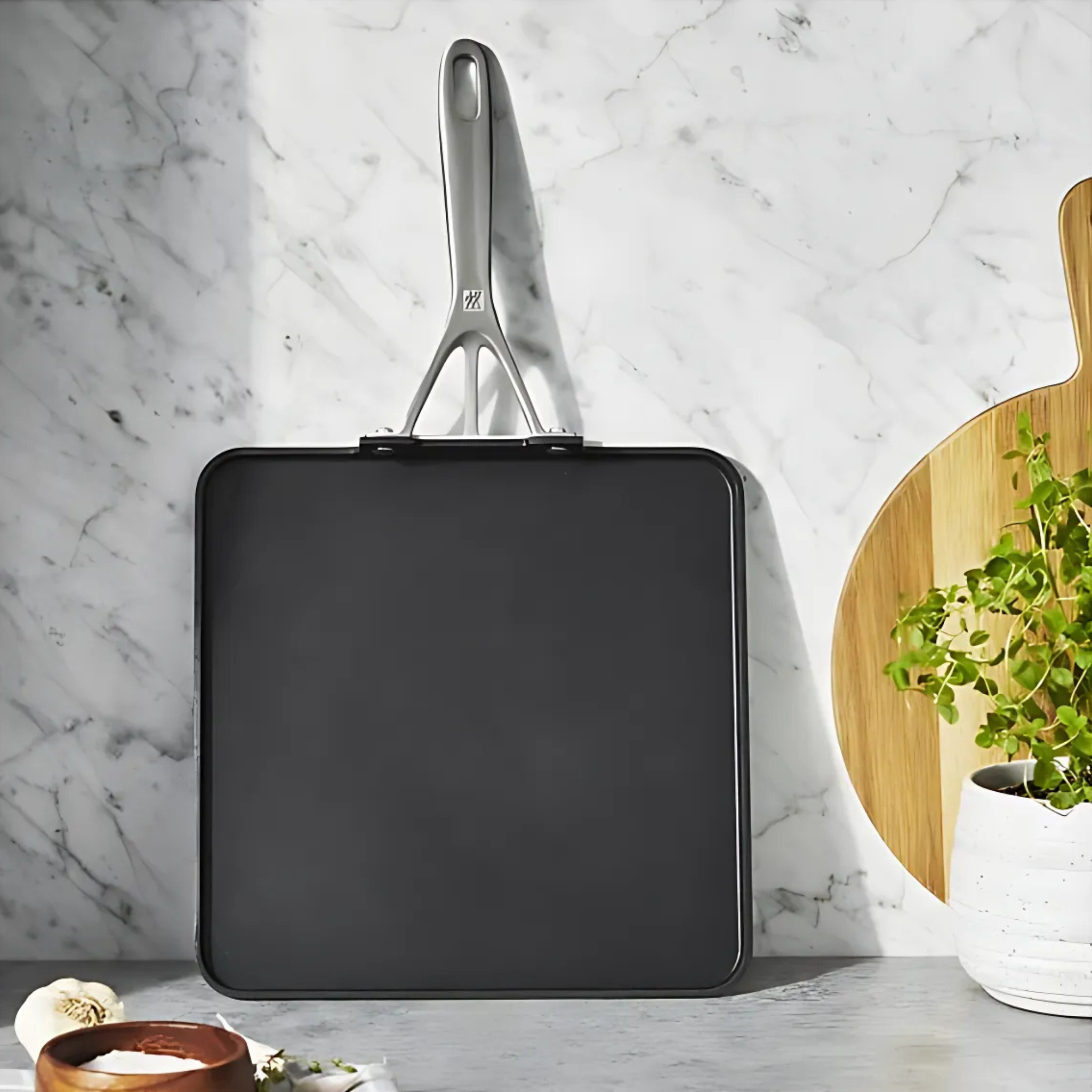 Prepare delicious homemade smash burgers, flip blueberry pancakes, or make a tasty flatbread pizza with the Zwilling Motion Square Pan. Its raised edge prevents food and liquids from slipping.