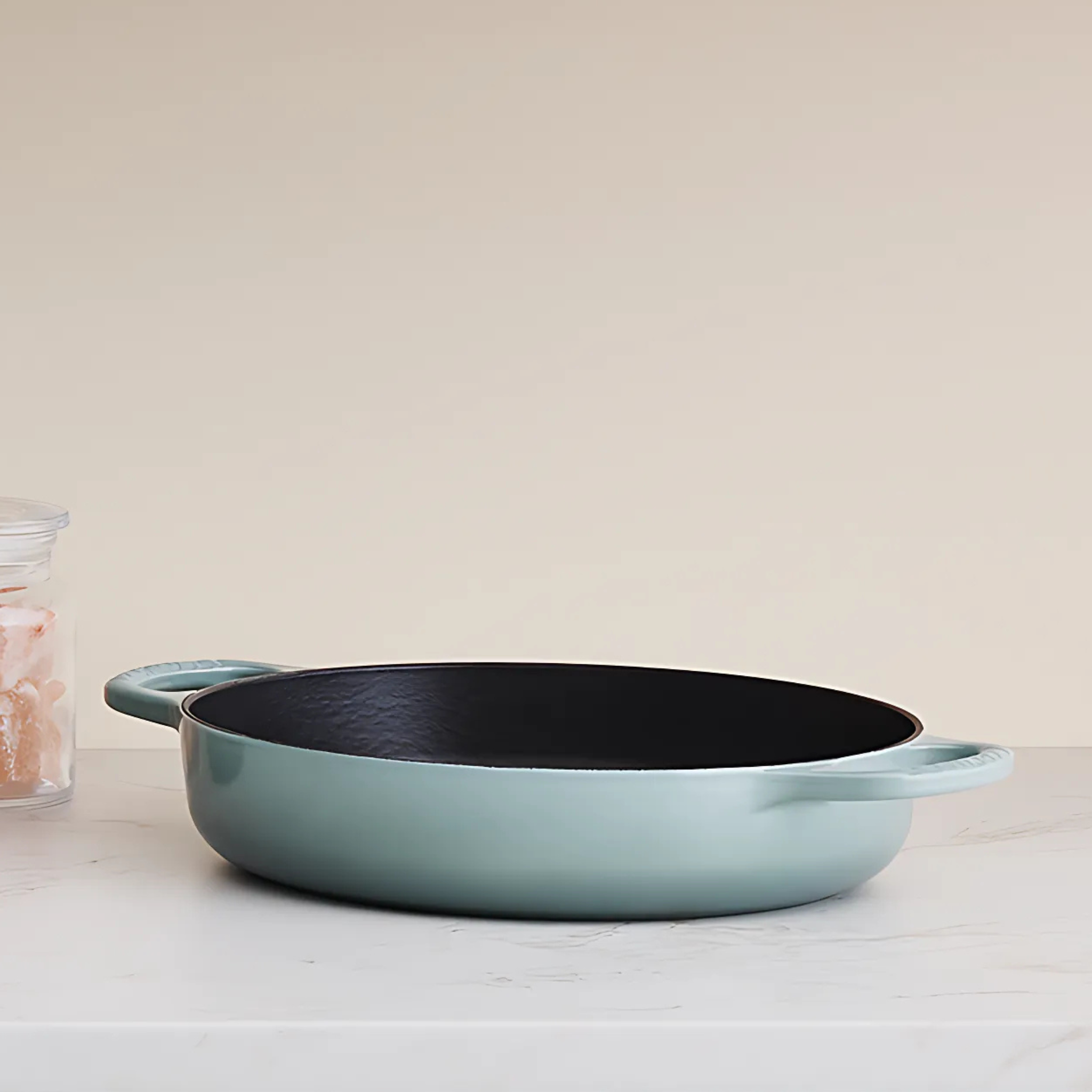 Versatile and practical, the Signature Everyday Skillet combines the depth of a braiser with the ease of use of a frying or sauté pan. Its wide surface and gently curved sides make stirring, turning, and serving easy, while its oversized handles provide a secure grip for moving from stovetop to oven to table.