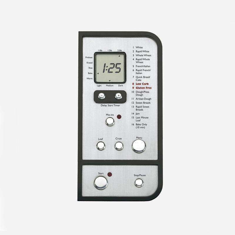- 16 program choices, 3 crust colors, 3 bread sizes