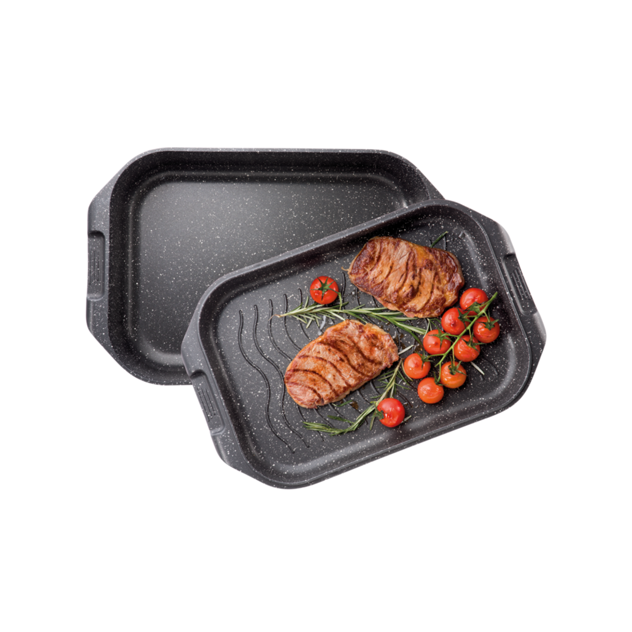 Unleash your creativity in the kitchen and prepare a variety of delicious dishes for your friends and family with the incredible versatility of the Cuisine::pro® Granite® Non-Stick Roaster & Grill Pan! This 2-in-1 cookware is a must-have for every kitchen. With its two-piece design that can be used independently or together, the Cuisine::pro® Granite® Roaster & Grill Pan is ideal for grilling, frying, baking, and roasting meats, fish, vegetables, and much more for delicious meals to share with your loved ones. Coated with an environmentally friendly, PFOA-free non-stick coating, the Cuisine::pro® Granite® Roaster & Grill Pan offers exceptional food release while ensuring healthy, chemical-free results.