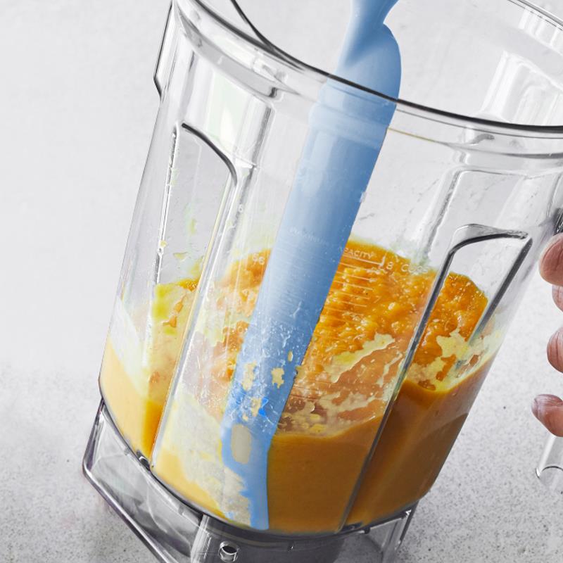 Mixer spatula, 29 cm (11.5"), sky blue, silicone. Scrape and scoop up every last bit of mixture. The flexible tip makes it ideal for use in mixers, blenders and food processors. Food-grade silicone heat resistant up to 500 §F / 260 §C. Safe for non-stick surfaces.
