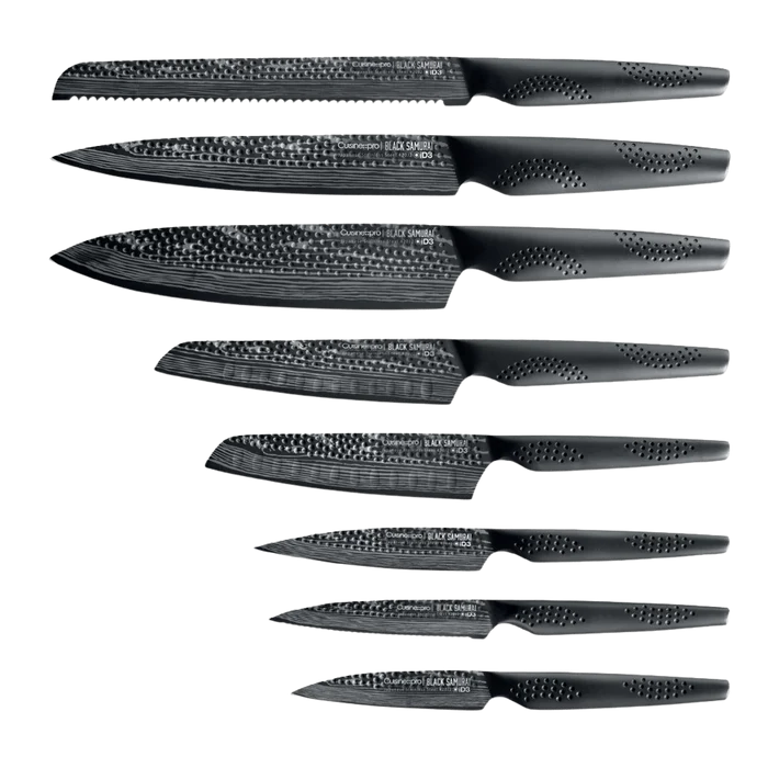 - Les couteaux Cuisine::pro® iD3® BLACK SAMURAI™ sont fins comme un rasoir et légers pour une expérience de hachage et de tranchage extrêmement rapide et agile.