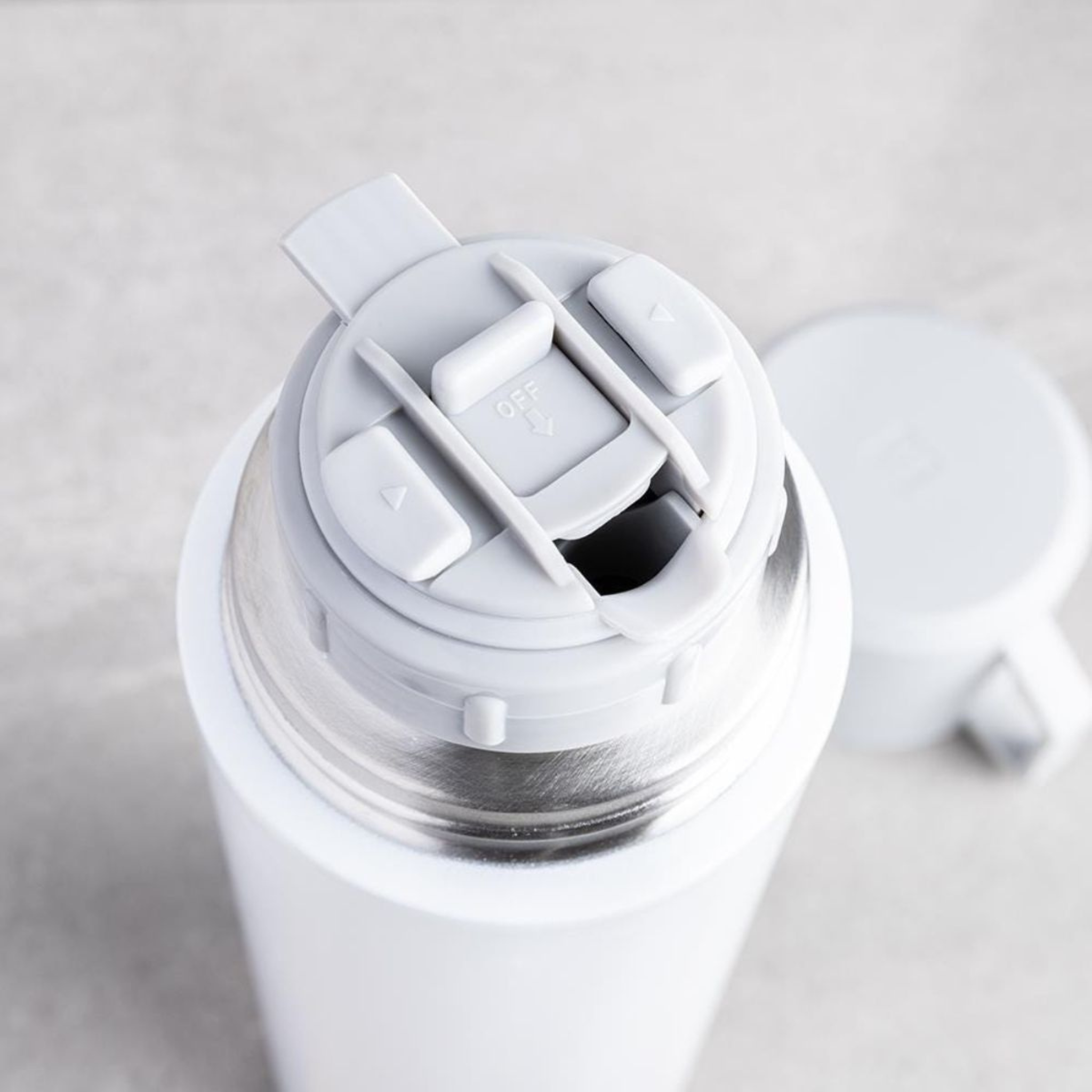 Le bouchon de sécurité garantit l’étanchéité de la bouteille. Fabriqué en acier inoxydable de haute qualité, le mug dispose également d’une base antidérapante pratique. Son design minimaliste reflète une qualité haut de gamme.