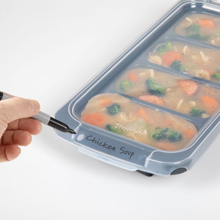 Portion et Congélo de Starfrit permet de portionner et congeler vos sauces, vos soupes et vos restes pour une consommation ultérieure. Simplement remplir, congeler, réchauffer et servir.