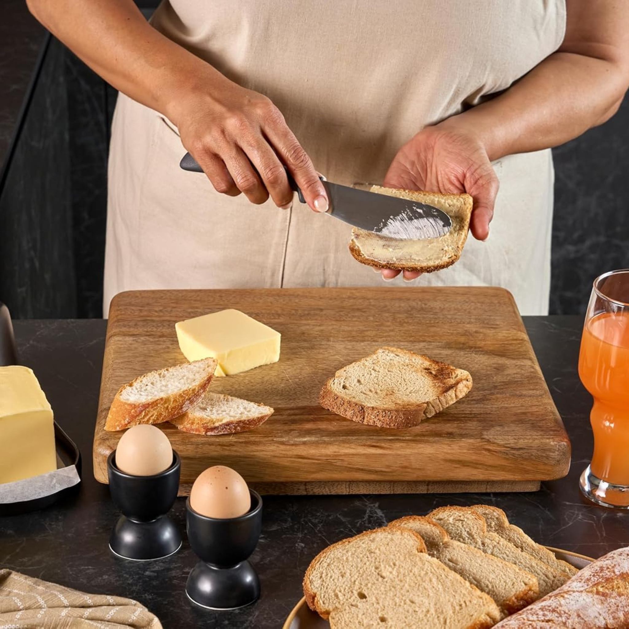 Ce couteau à tartiner facilite l’étalement et la découpe légère des aliments mous. Sa lame large, souple et arrondie en acier inoxydable glisse aisément sur le pain, les pâtisseries et autres aliments délicats sans les déchirer. Il est idéal pour le beurre, la confiture, le fromage à la crème et les trempettes. Son manche ergonomique intégrant de la paille de blé permet de réduire l’utilisation de plastique. Un protège-lame est inclus pour un rangement sécuritaire.