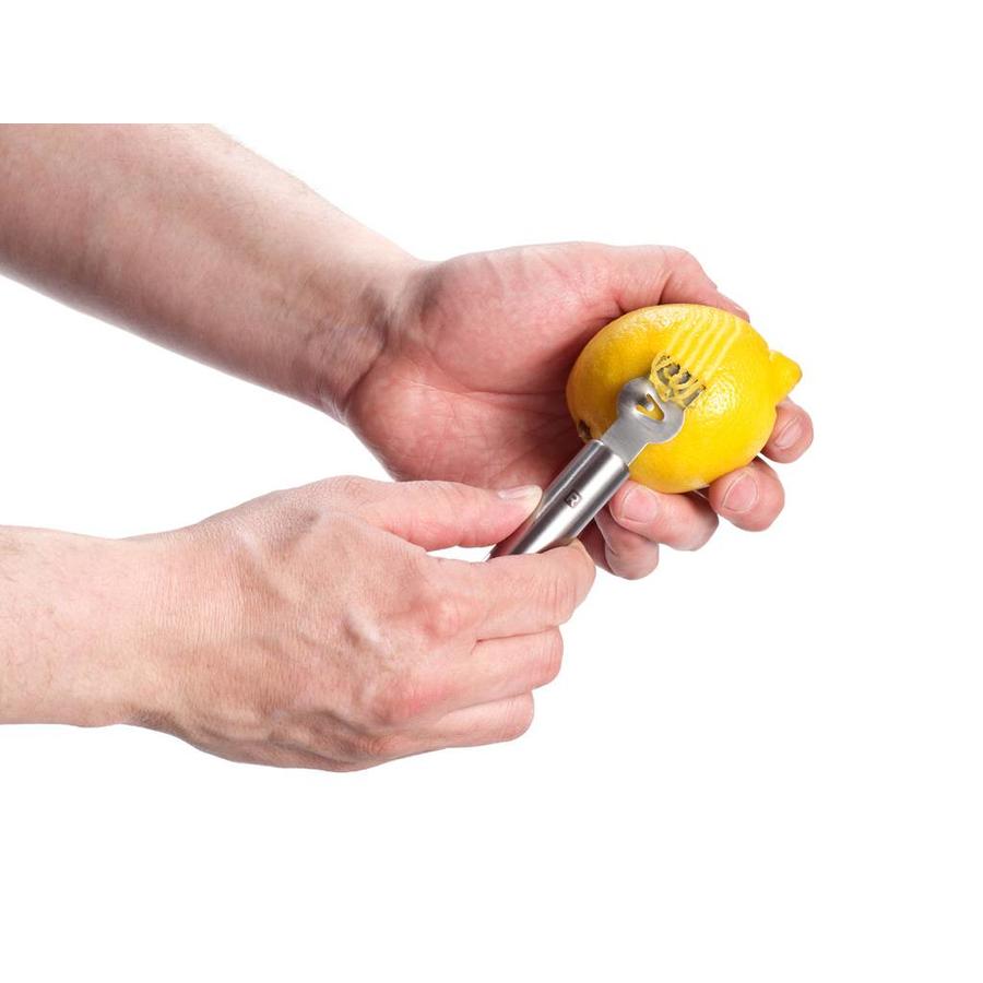 - Zesteur à agrumes avec 2 lames : petite lame pour créer des zestes fins et grosse lame pour découper de longs zestes