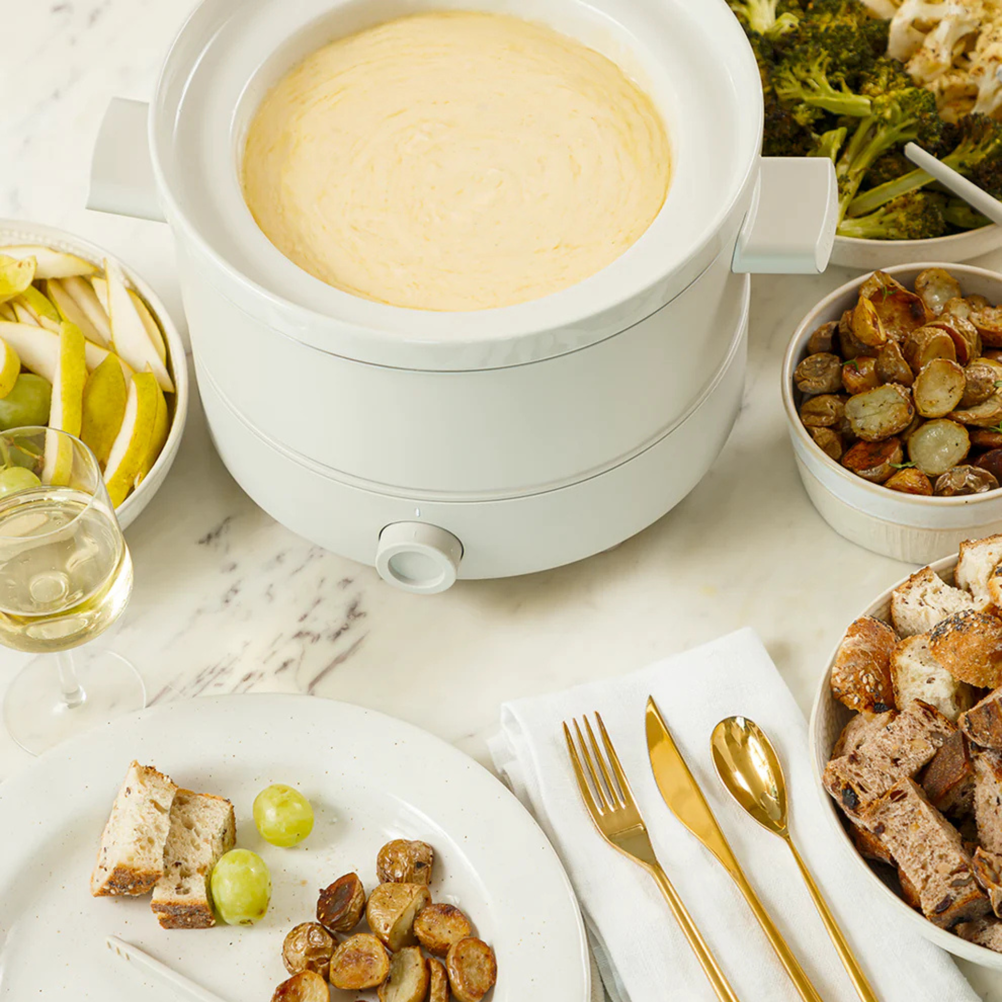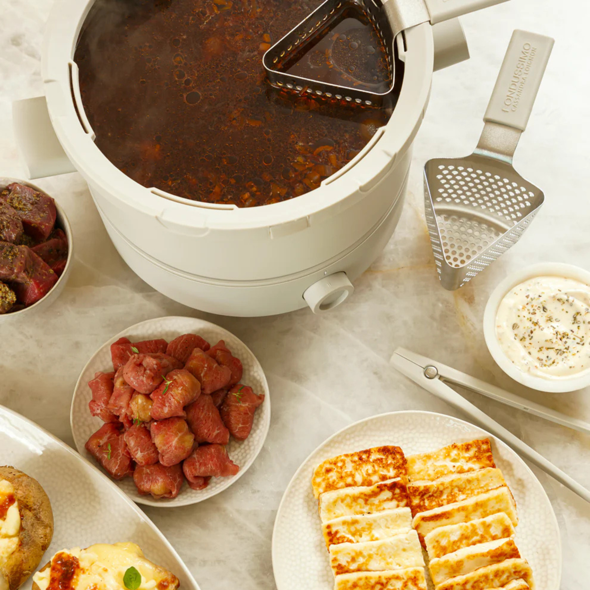 Développé en collaboration avec Cassandra Loignon, cet ensemble 3-en-1 permet de réaliser des fondues au bouillon, au fromage, au chocolat ou encore d’utiliser le mode poêlon. Élégant et polyvalent, il comprend tous les accessoires nécessaires pour partager des repas conviviaux et raffinés.