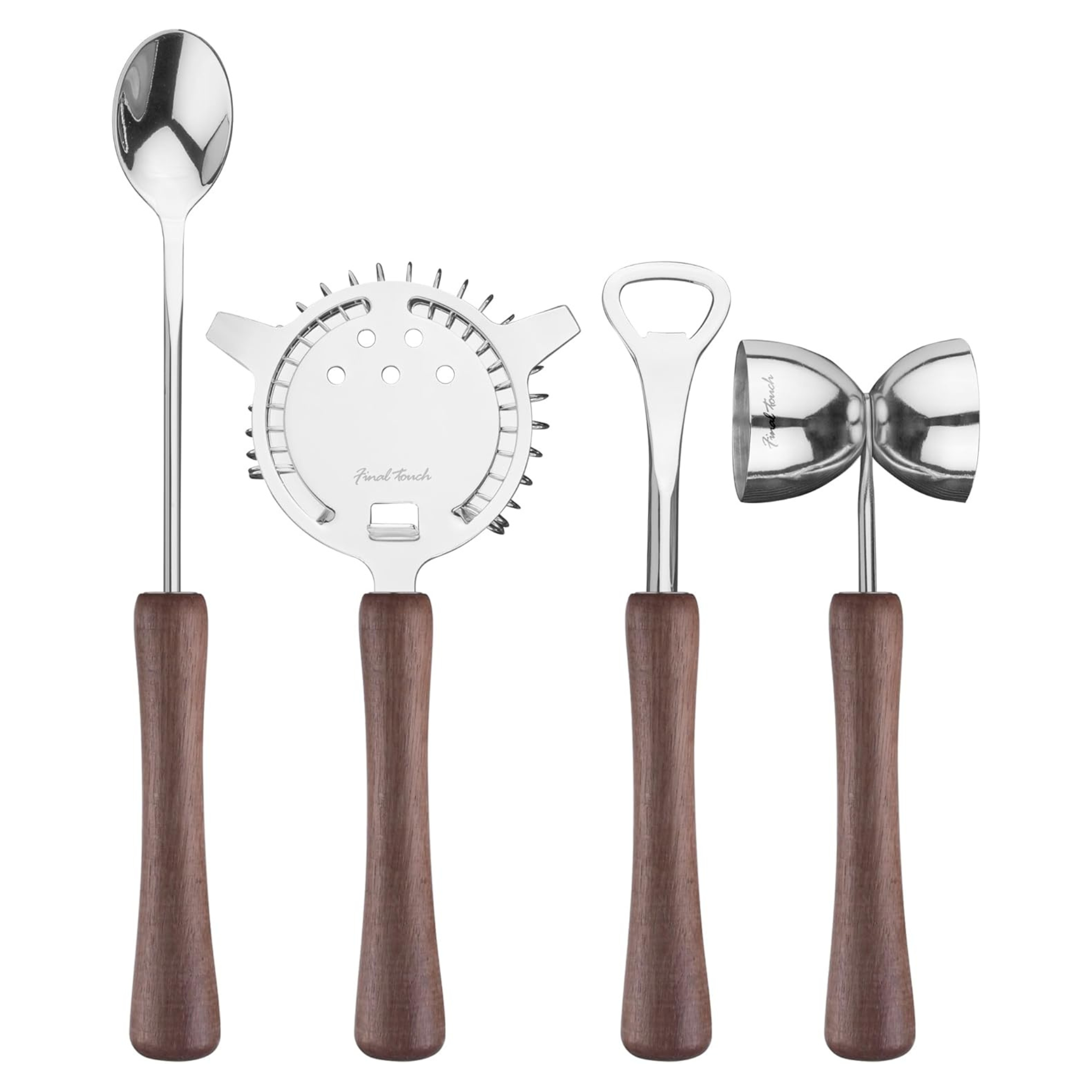 Ensemble d’outils de bar en acier inoxydable avec poignées en bois 4 pièces – Final Touch