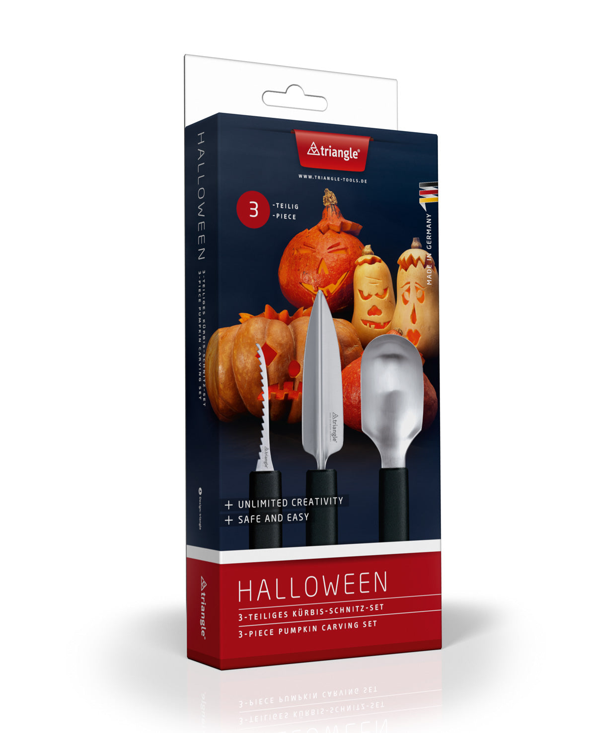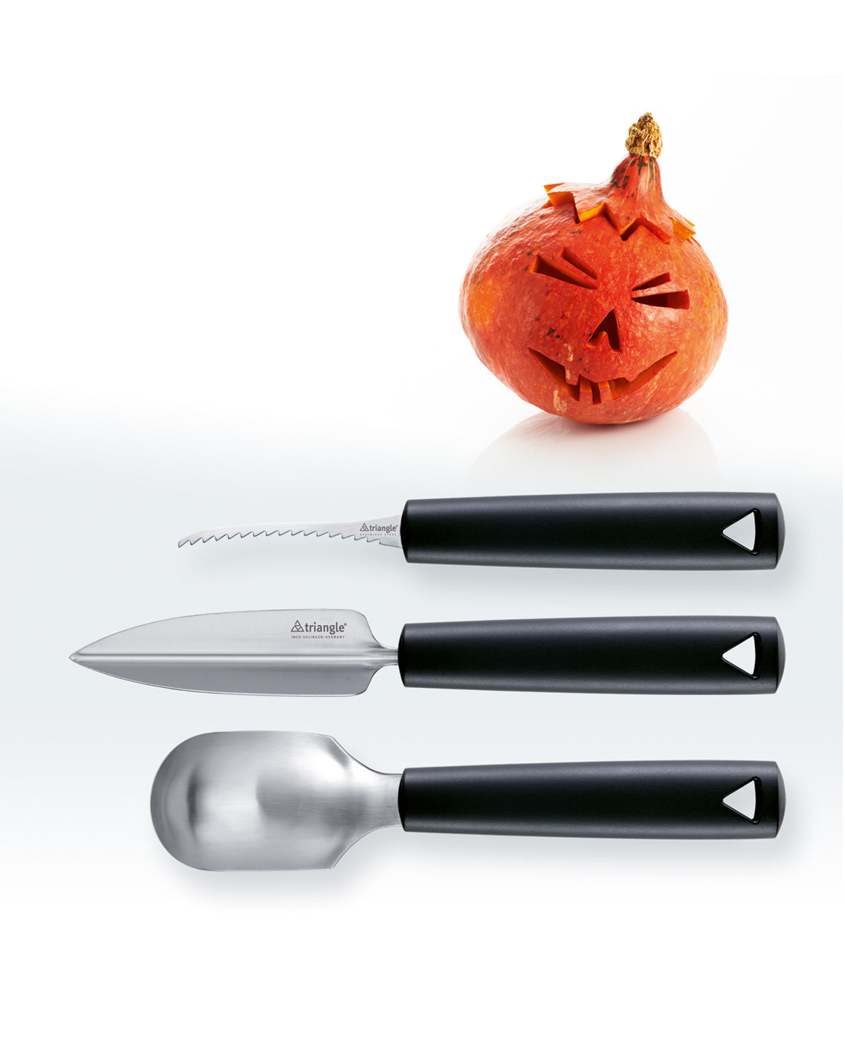 Les visages effrayants d'Halloween sont probablement la vraie nature de la plupart des citrouilles décoratives de la saison d'automne. Quel dommage que ce légume soit si joliment utilisable pour une grande variété de configurations décoratives. Avec les outils de sculpture de citrouille Triangle®, tout est possible sans nuire aux mains ni aux enfants.
