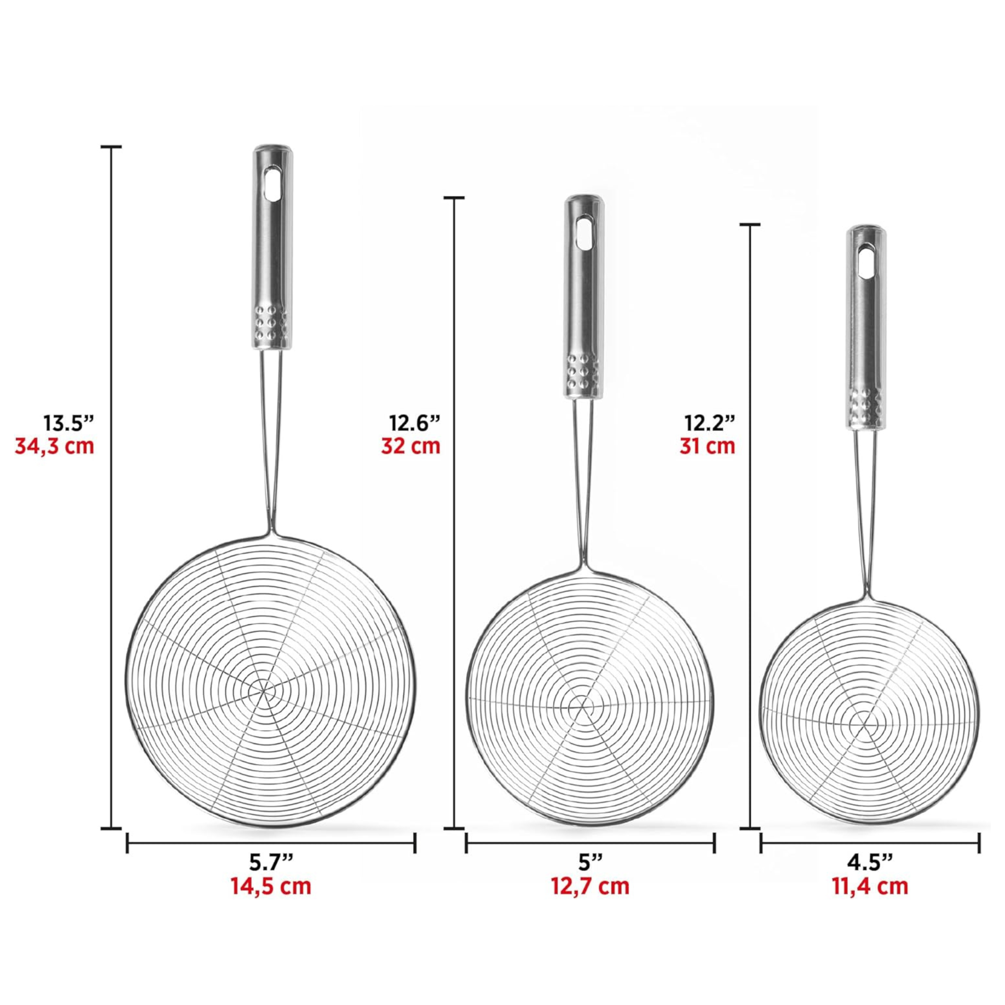 Cet ensemble de 3 passoires en acier inoxydable de style asiatique est parfait pour cuisiner, frire ou égoutter vos aliments préférés comme les nouilles, les légumes blanchis ou les aliments frits. Leur design en toile d’araignée permet une filtration efficace, tandis que la poignée antidérapante, creuse et résistante à la chaleur assure une manipulation confortable. Compactes, légères et durables, elles s’accrochent facilement grâce à leur trou de suspension intégré.