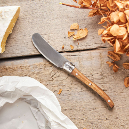 Ces couteaux à beurre de signature sont vendus en ensemble de 4 et sont spécialement conçus pour trancher et étaler votre beurre, confitures et gelées. Les manches en bois sont confortables, esthétiques et entièrement lavables au lave-vaisselle pour votre commodité. Optez pour les couteaux à beurre Laguiole s'ils ne font pas encore partie de votre équipement de cuisine et appréciez le tranchage et l'étalage en toute simplicité.
