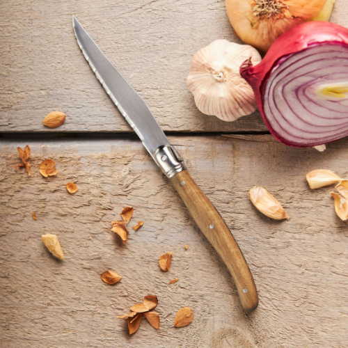 Ces couteaux à steak Laguiole, vendus en ensemble de 4, sont conçus pour couper vos viandes avec précision. Les manches en bois sont confortables, élégants et entièrement lavables au lave-vaisselle pour plus de commodité. Si les couteaux à steak Laguiole ne font pas encore partie de votre équipement de cuisine, faites-en l'acquisition et profitez d'une découpe facile.