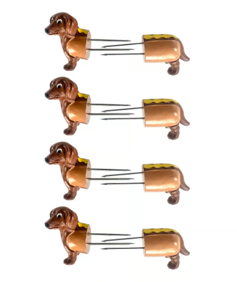 Ces porte-maïs sur le thème du teckel apporteront du plaisir à remuer la queue lors de votre prochain barbecue ! Les broches en acier inoxydable et les poignées de taille idéale maintiennent votre maïs stable et vos mains propres. Livré en paquet de quatre pour que tout le monde puisse profiter de son maïs avec style.
