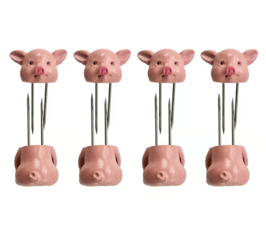 Ces porte-maïs sur le thème des porcelets vous permettront de récolter tout le maïs que vous voulez lors du prochain barbecue ! Les broches en acier inoxydable et les poignées de taille idéale maintiennent votre maïs stable et vos mains propres. Livré dans un pack de quatre paires pour que tout le monde puisse profiter de son maïs avec style.