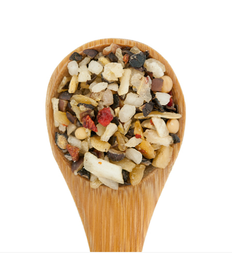 Ingrédients : Légumes déshydratés (ail, oignon, poivron rouge), épices irradiées (moutarde), sel, huile végétale (canola).