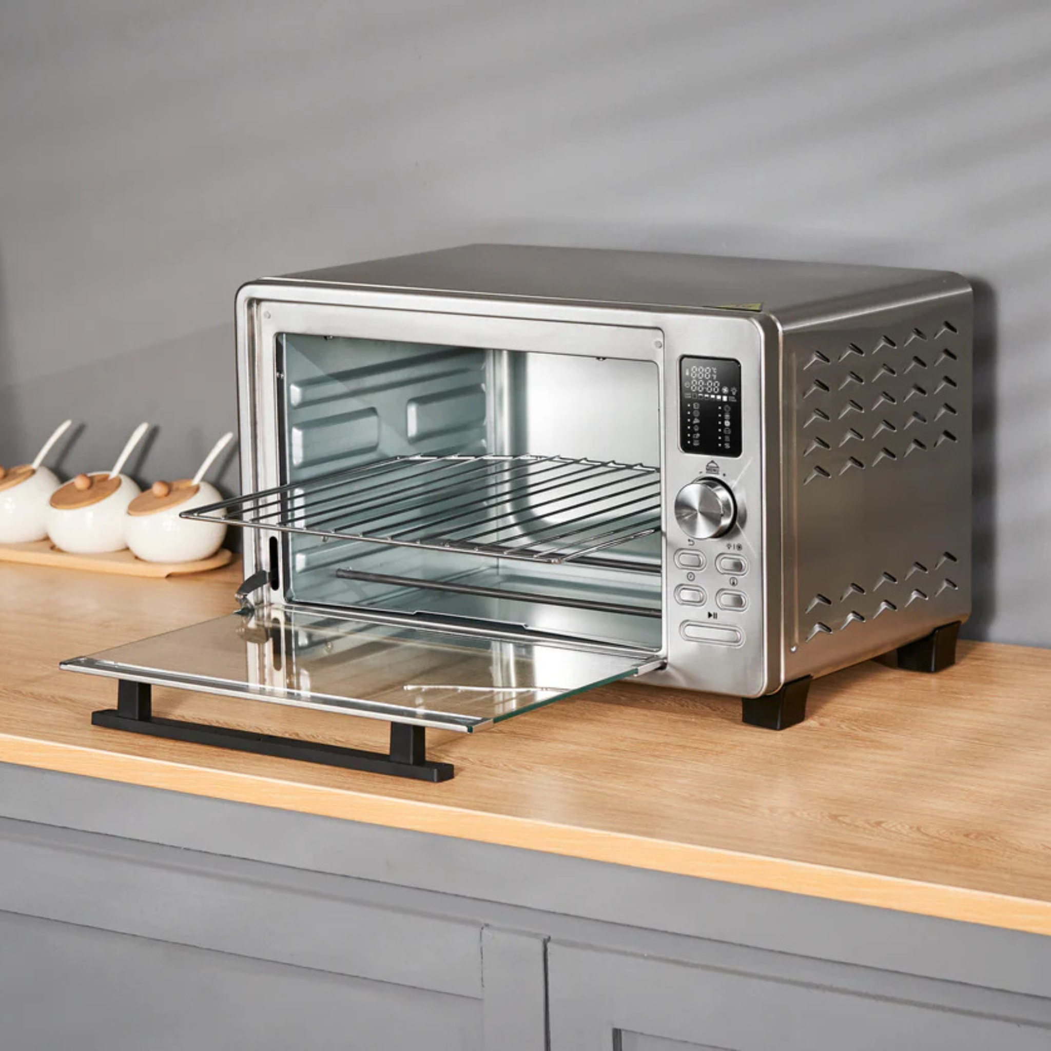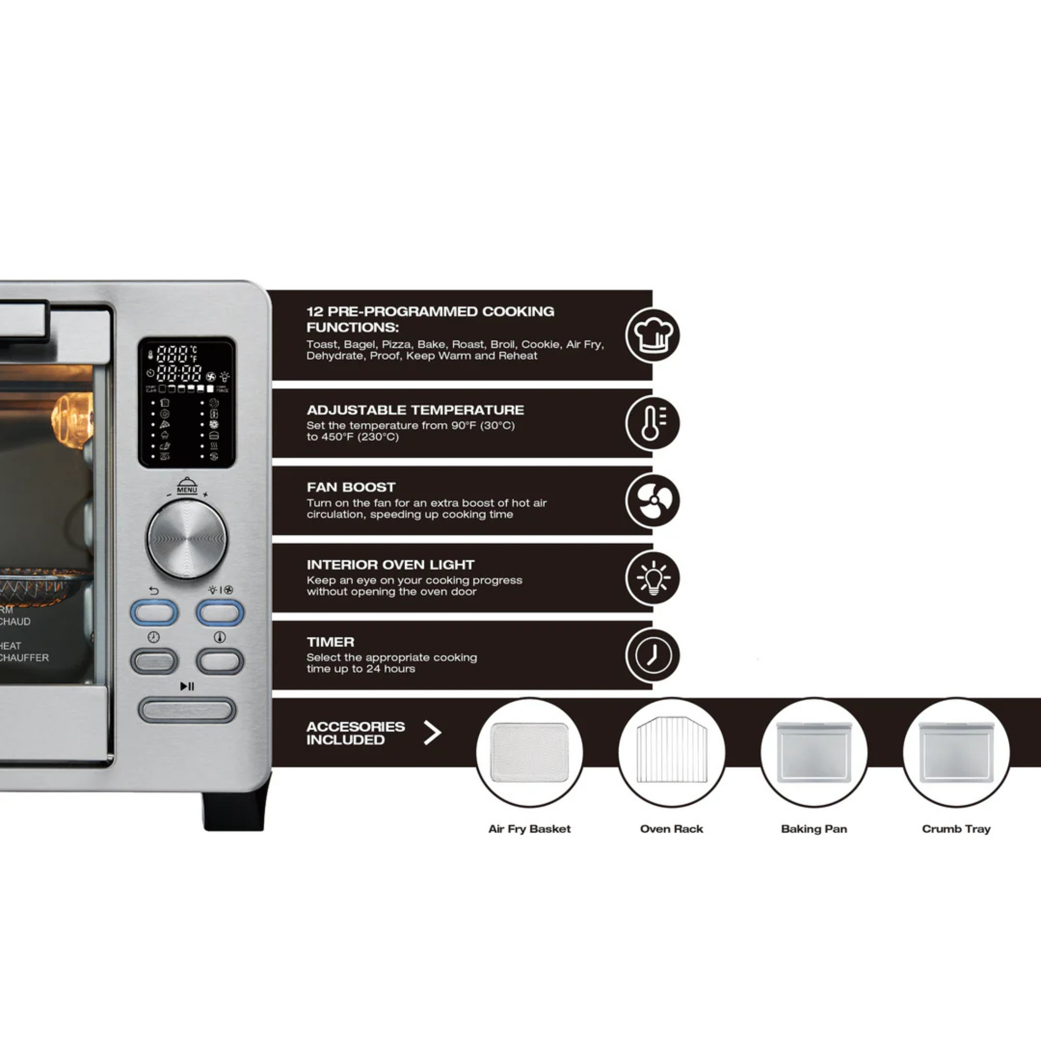 Ce four grille-pain numérique multifonction permet de cuire, rôtir, griller, réchauffer ou frire à l’air avec précision. Sa technologie de convection à circulation d’air rapide assure une cuisson uniforme et croustillante. Compact mais spacieux, il peut contenir jusqu’à 6 tranches de pain ou une pizza de 12 po. Il est doté de 7 fonctions préprogrammées, d’une poignée froide au toucher, de pieds antidérapants et d’un panneau de commande numérique intuitif. Idéal pour varier les recettes au quotidien.
