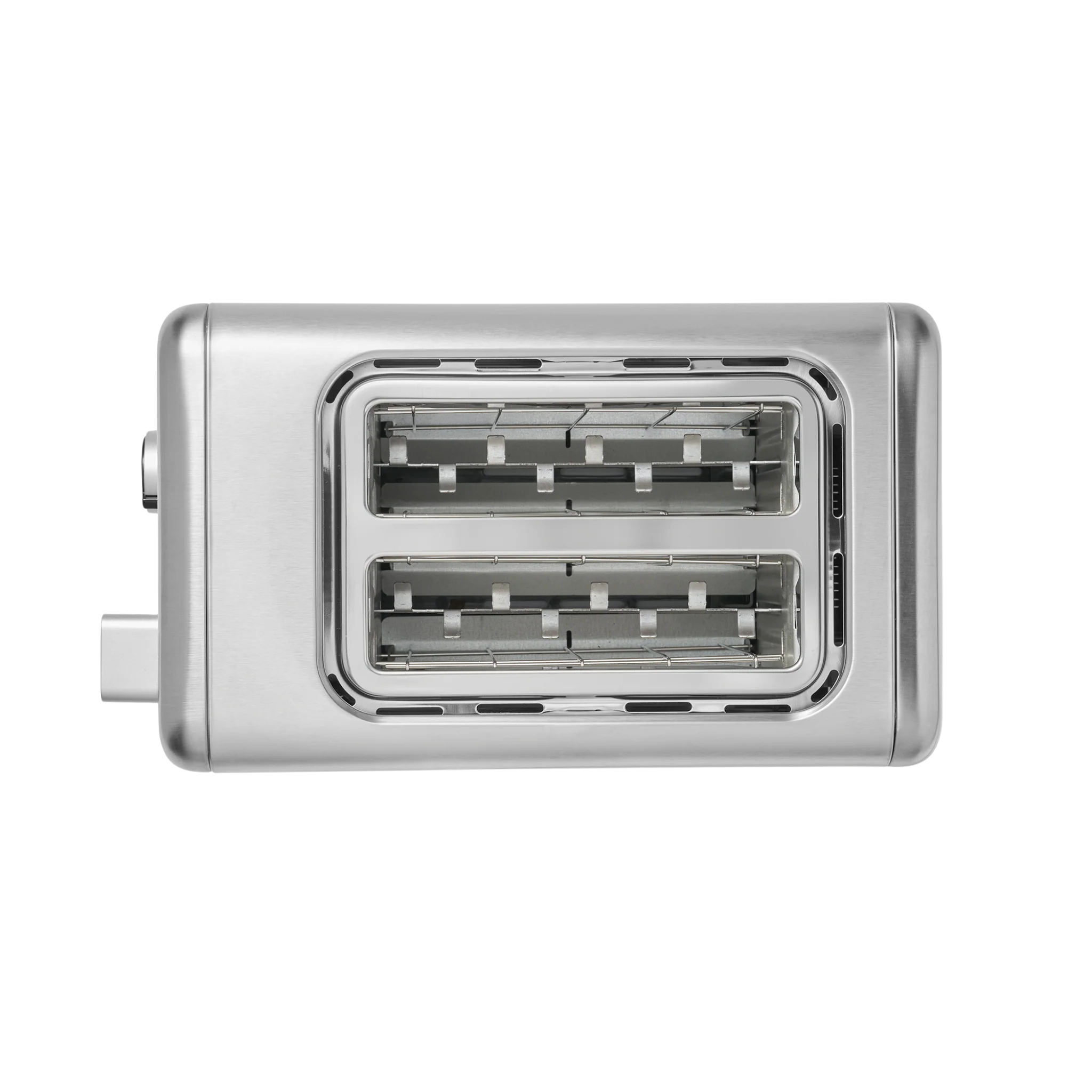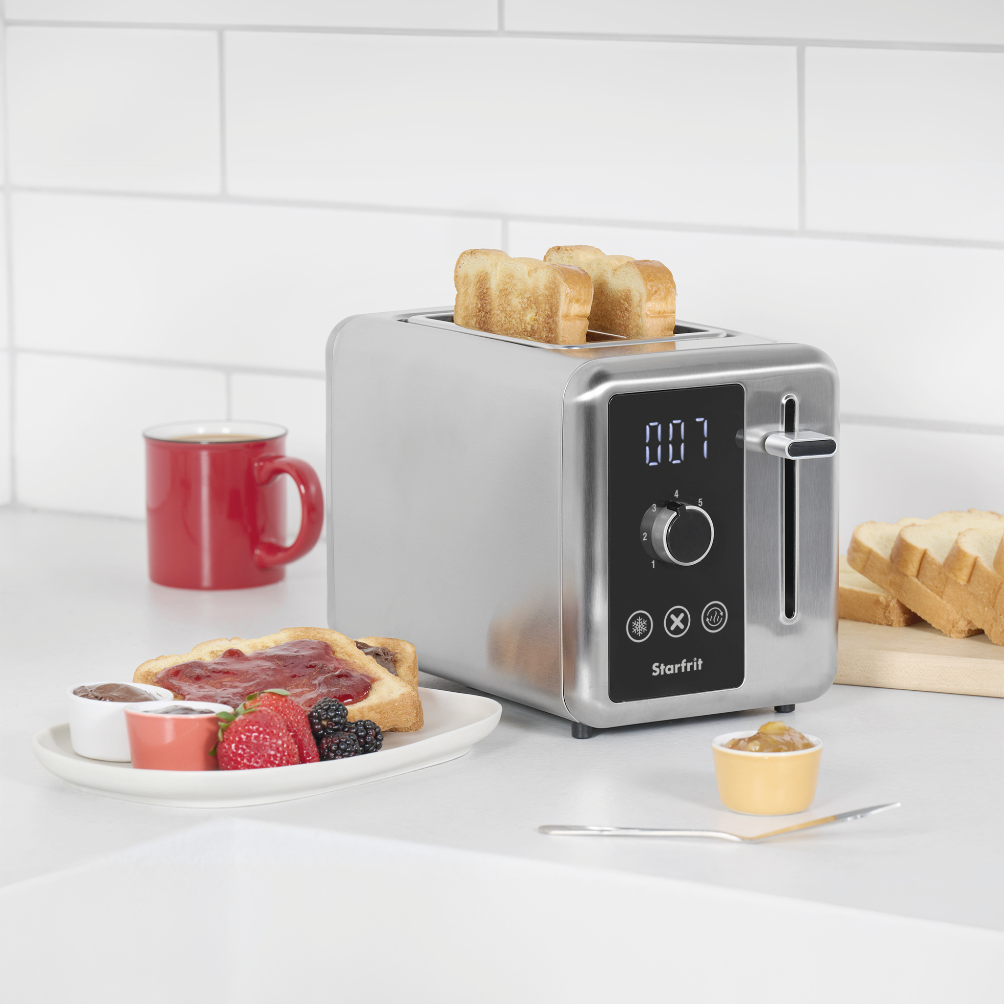 Grille-pain moderne en acier inoxydable conçu pour un usage quotidien. Ses fentes larges s’adaptent automatiquement à l’épaisseur du pain. L’écran numérique indique le temps restant et simplifie le suivi de la cuisson. Les fonctions réchauffer et décongeler permettent plus de flexibilité, et le ramasse-miettes amovible facilite le nettoyage.