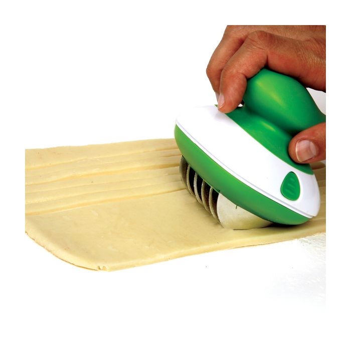 Avec un mouvement rapide de va-et-vient, 6 lames en acier inoxydable permettent un travail rapide avec un minimum d'effort pour hacher et couper les herbes. Utilisez également pour couper la pâte et pour les motifs de treillis ou les nouilles pour la soupe d'environ 1/2 "de large entre les lames.