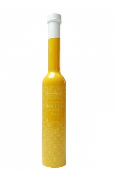 Une huile d'olive très douce, agréablement aromatisée au curry.