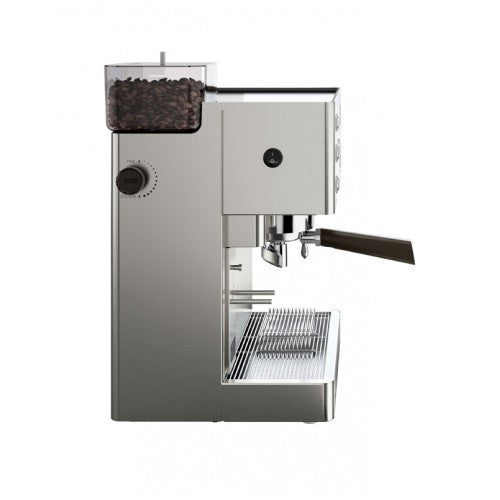 La Kate représente l’union parfaite entre esthétique et fonctionnalité. Une machine unique qui combine une machine expresso au groupe professionnel avec un moulin à café professionnel dans un seul corps en inox brossé.