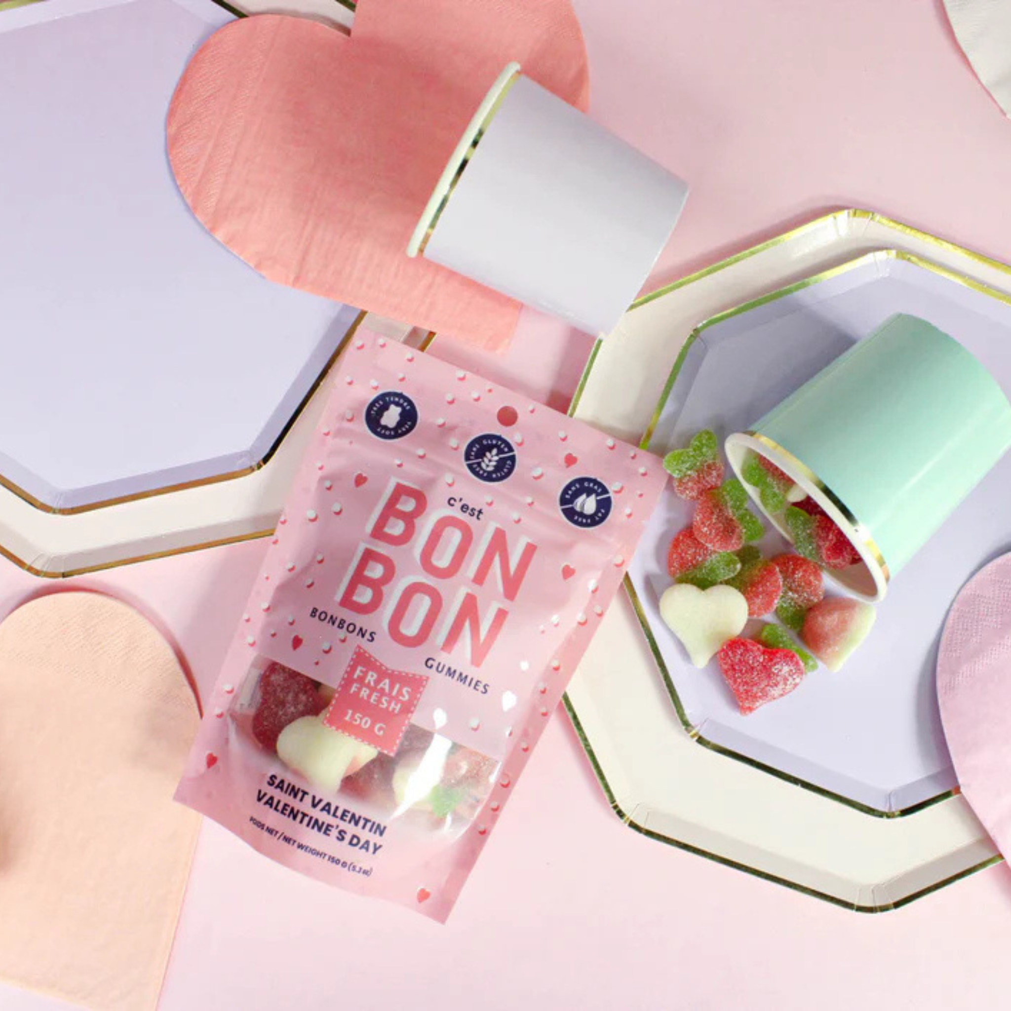 À la Saint-Valentin, nous vous proposons de célébrer l’amour, un bonbon à la fois! Ces délicieux petits coeurs mélangés à de délicieuses fraises sont là pour vous aider à propager l’amour partout!